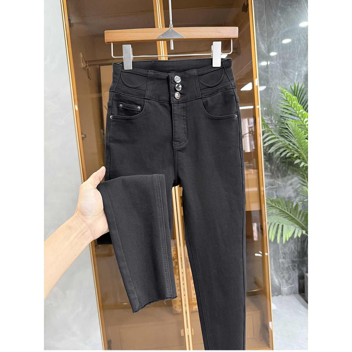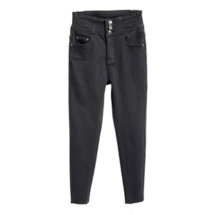 M030998 女 收腹提臀薄绒三扣宽腰牛仔九分小脚裤 小个子收