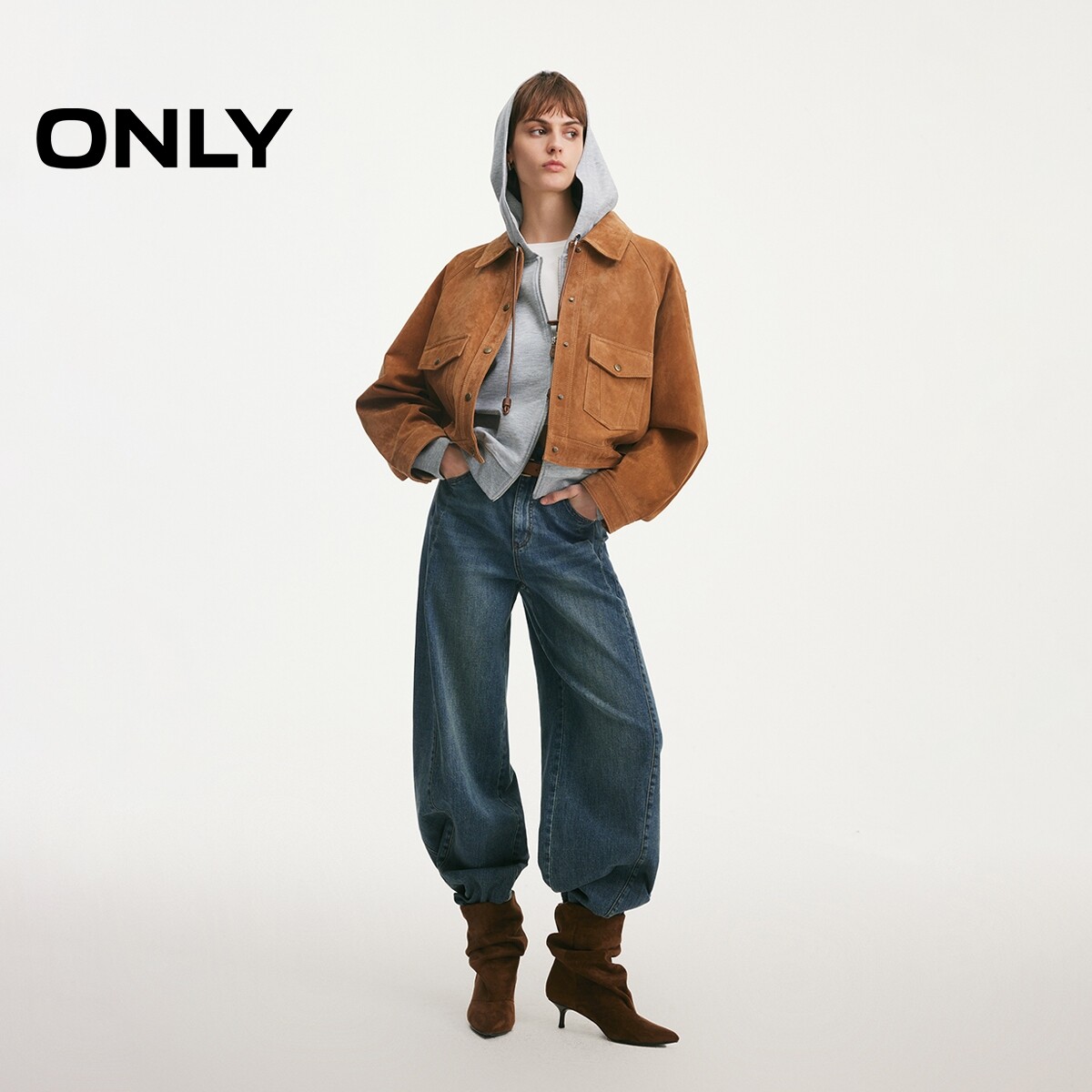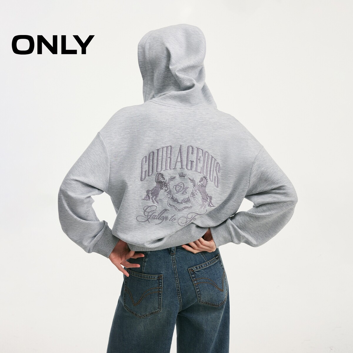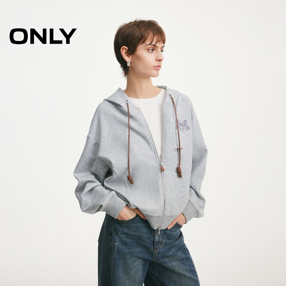 ONLY2026春季 含莱赛尔PU帽绳双头拉链宽松连帽卫衣外套上衣女 新款