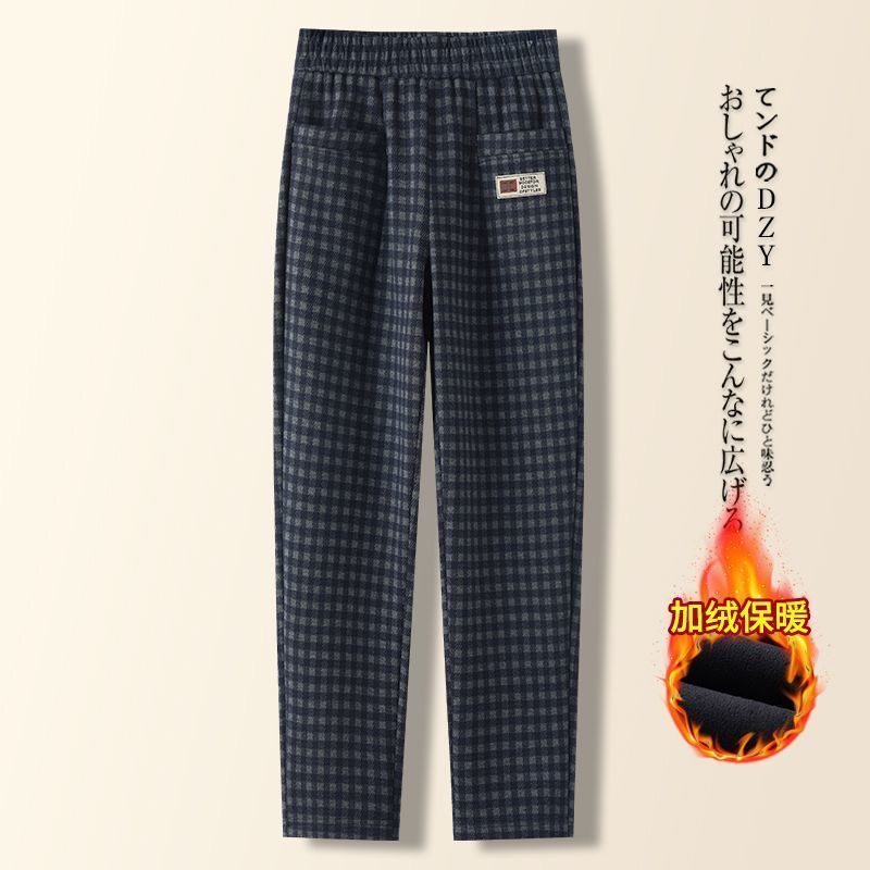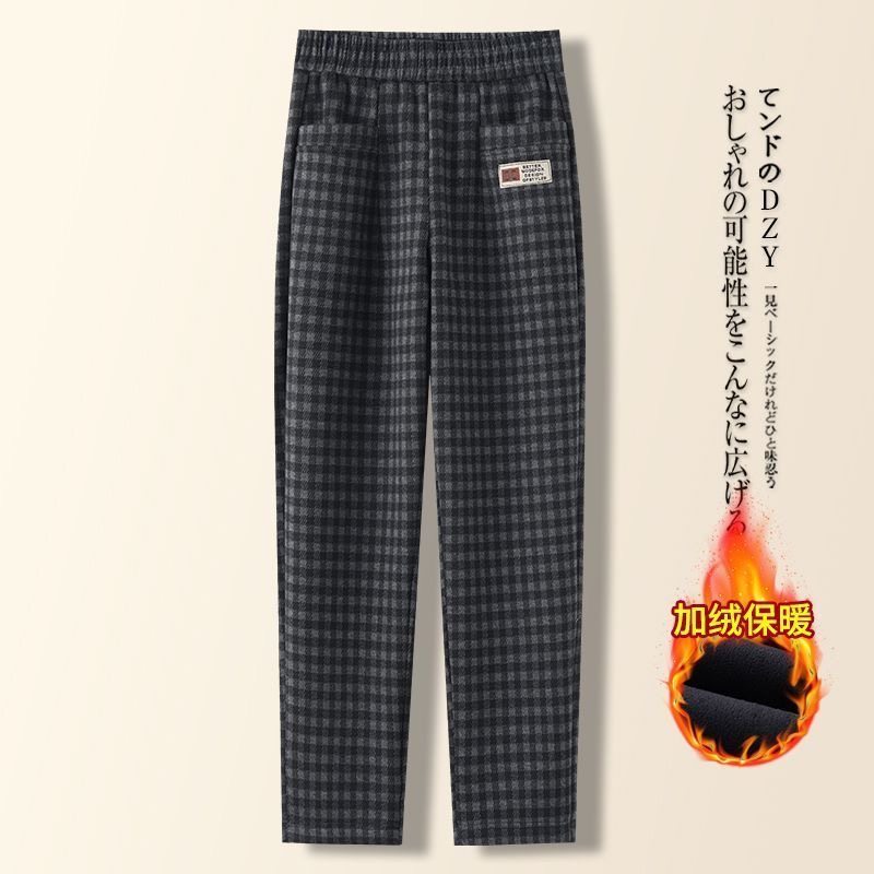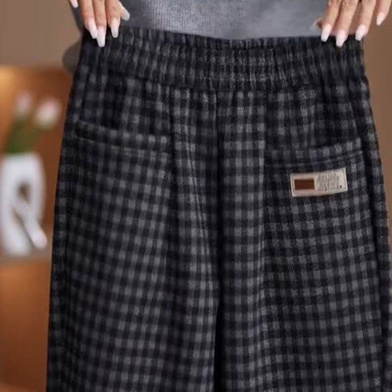 高腰加厚显瘦休闲小脚长裤 加绒加绒毛呢格子哈伦裤 女2025秋冬新款