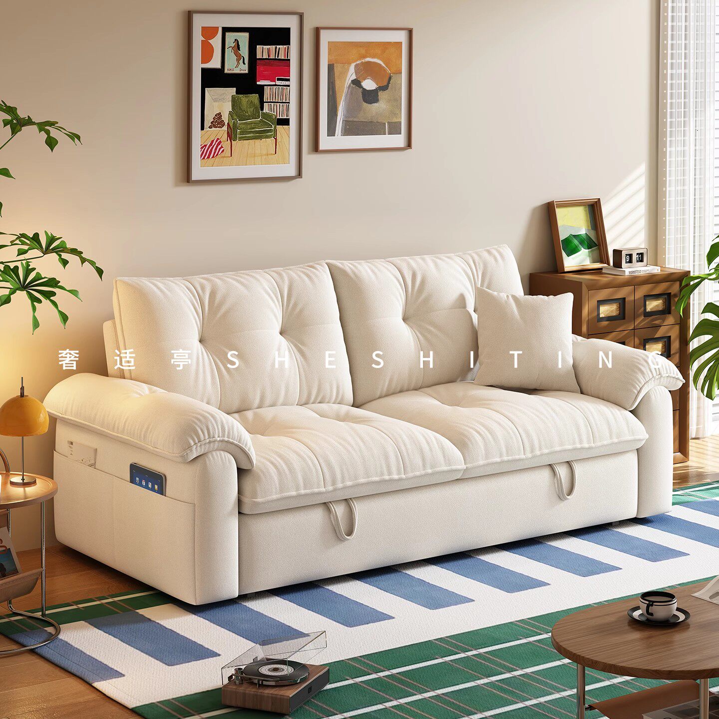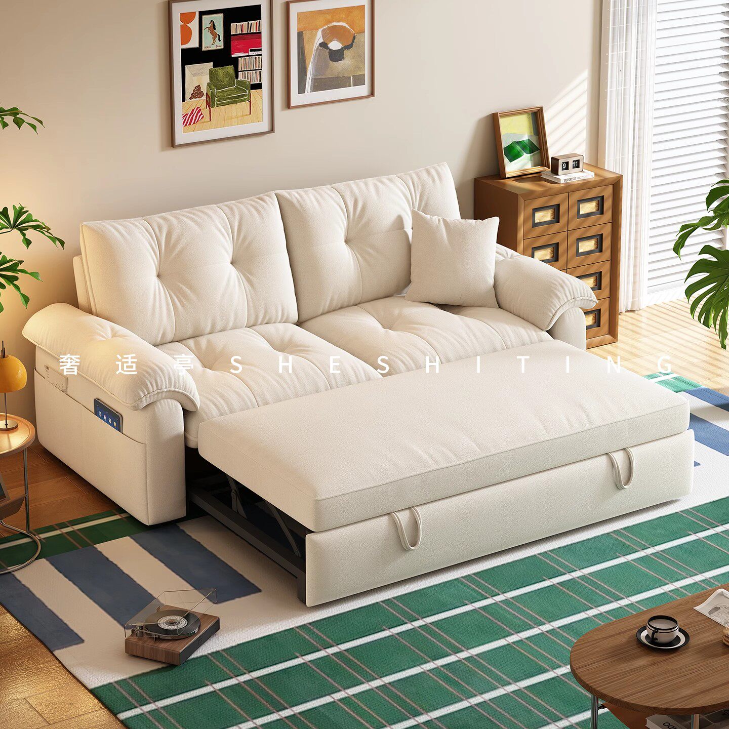 奶油风可拆洗沙发床折叠两用2025新款 小户型单双人多功能布艺沙发