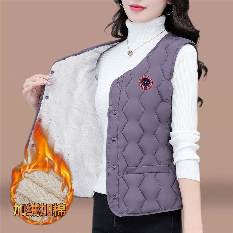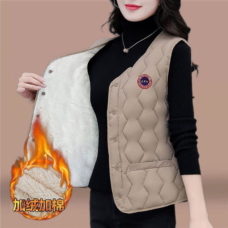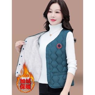 百搭内胆 v领坎肩修身 2025新款 秋冬羽绒棉马甲女加绒保暖背心短款