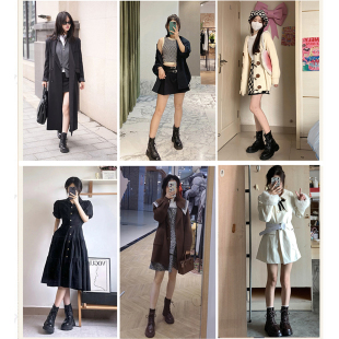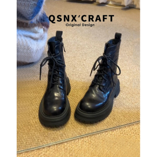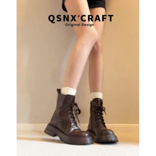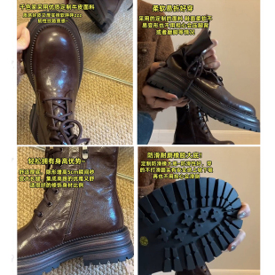 复古靴子小个子棕色短靴 爆款 羊皮版 内增高马丁靴女2025秋冬新款