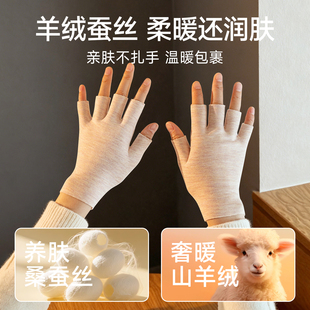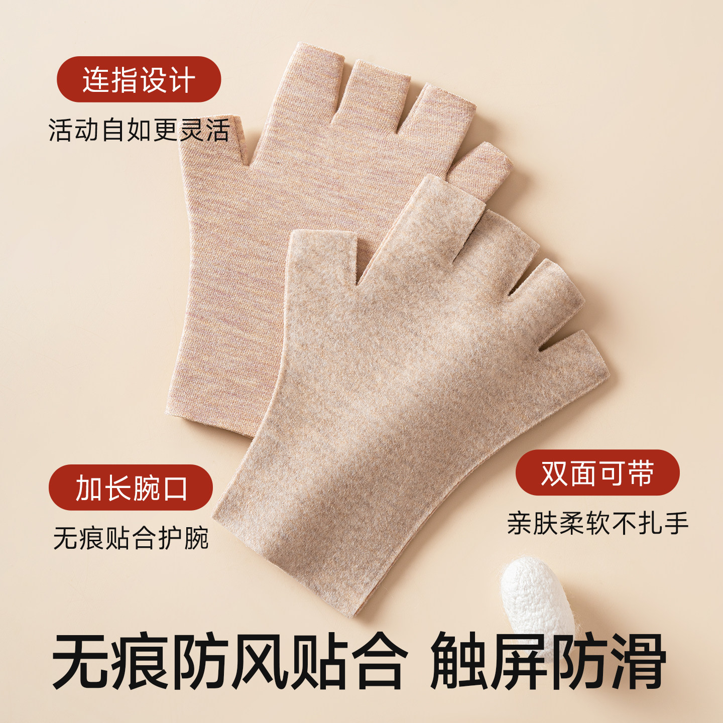 手套女冬季 可爱保暖骑车针织毛绒加绒加厚学生写字半指翻盖露指头
