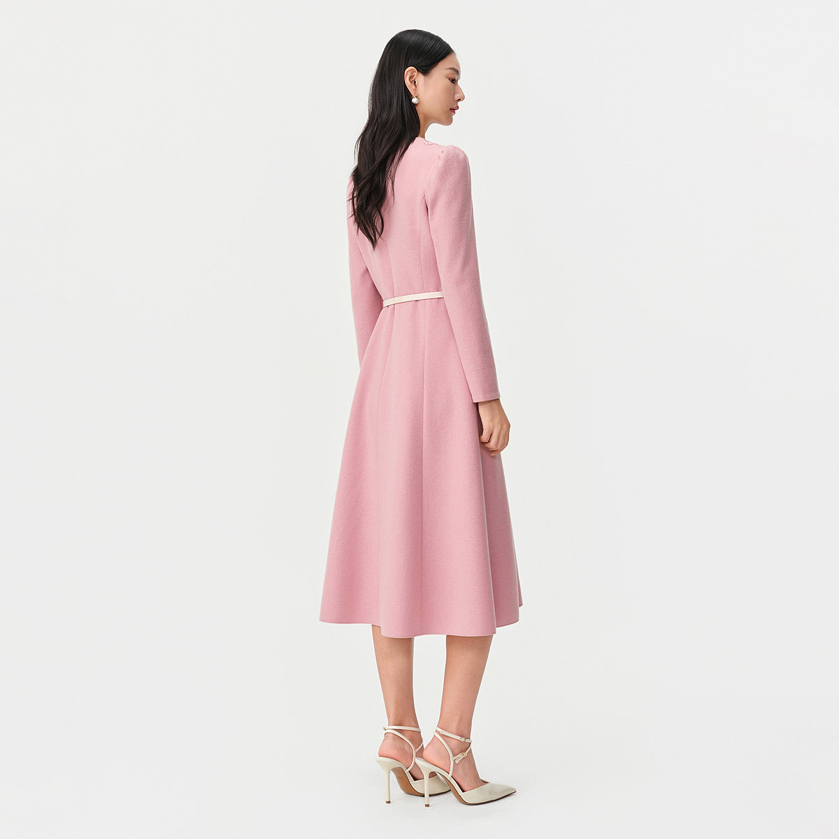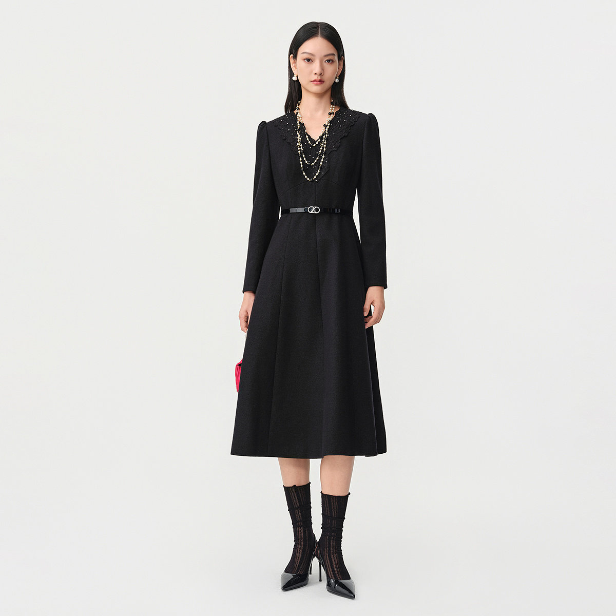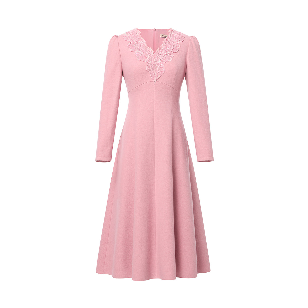珂莱蒂尔Koradior绵羊毛优雅气质收腰V领拼蕾丝连衣裙2026春新款