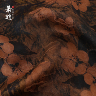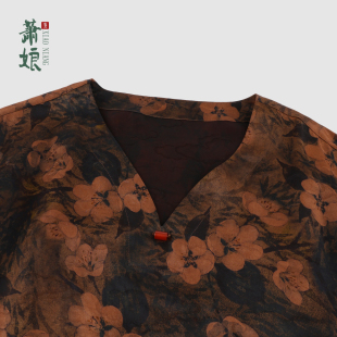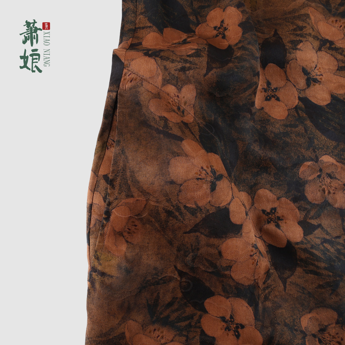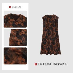 萧娘印花香云纱连衣裙新中式 女裙桑蚕丝长裙1325 圆领无袖
