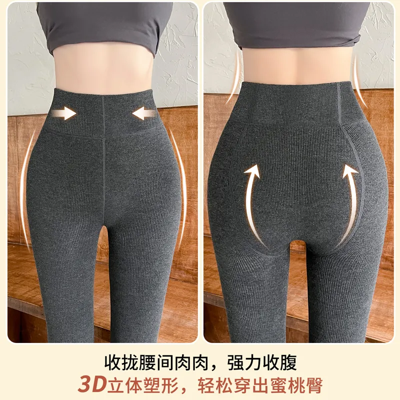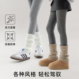 袜零下羊毛 加绒加厚外穿保暖针织竖条纹连裤 深灰色打底裤 女秋冬季
