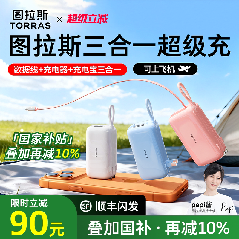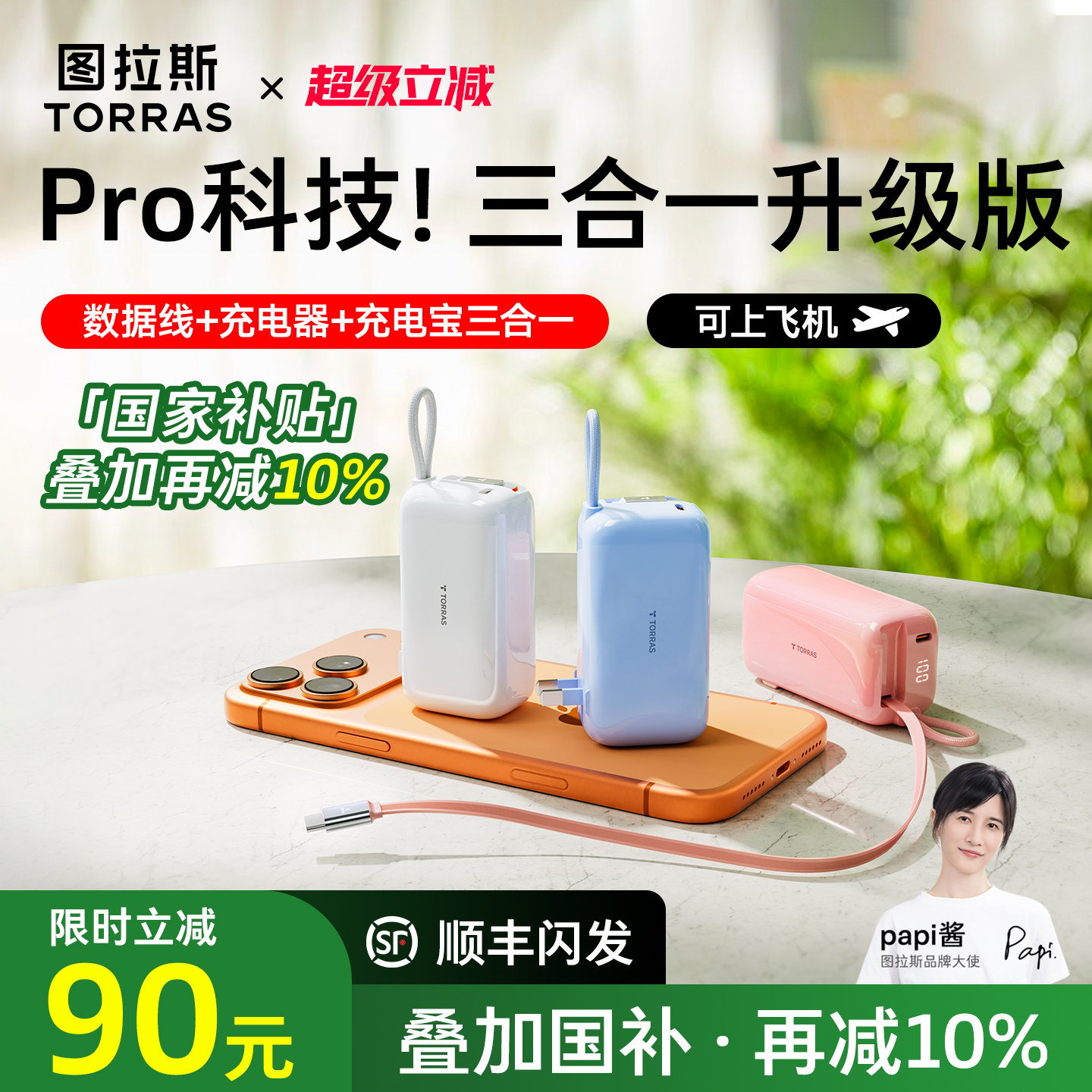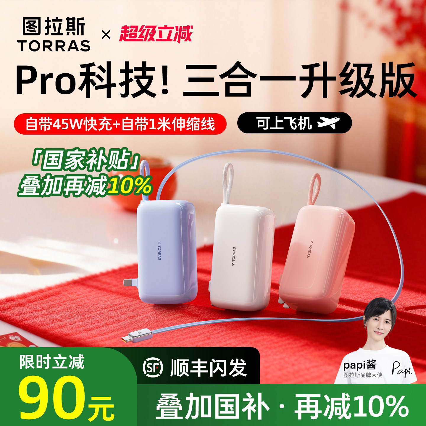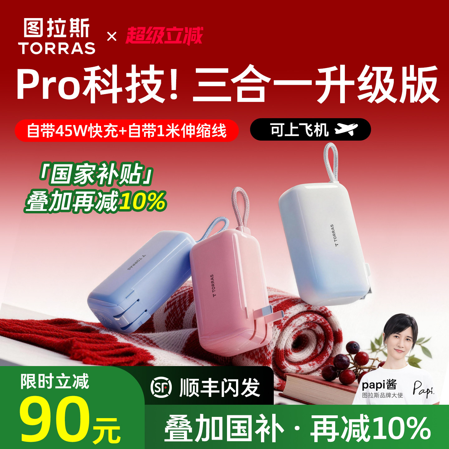 充电宝器3C认证可上飞机快充能量棒移动电源大容量适用苹果 图拉斯45W三合一Pro随心充2026新款 papi酱同款