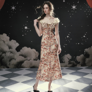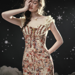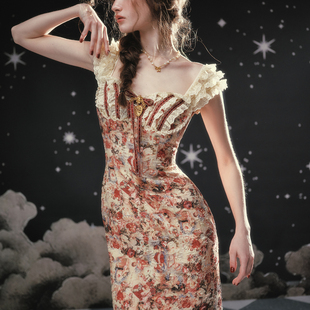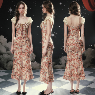 复古千金风蕾丝拼接碎花鱼尾度假连衣裙女 法式 LaceMade 堕落爱神