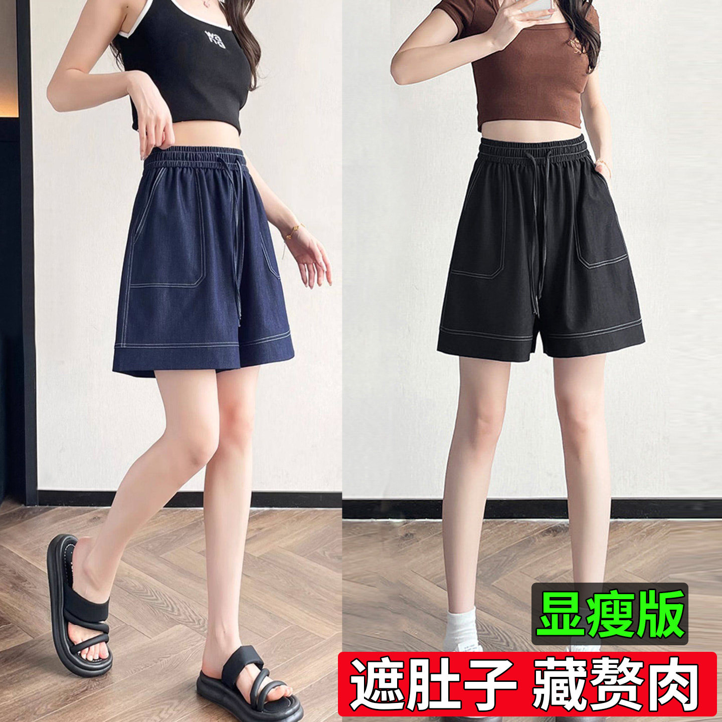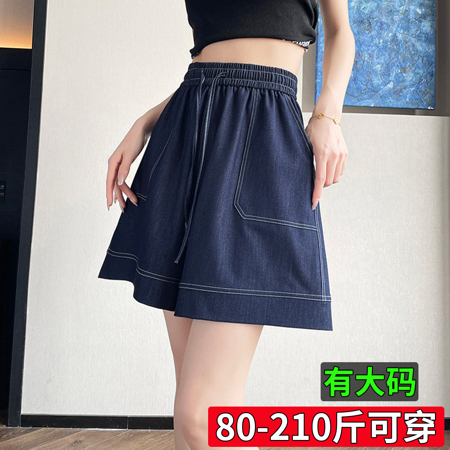 2026新款 女夏季 宽松阔腿中裤 薄款 大码 冰丝五分裤 胖mm天丝牛仔短裤