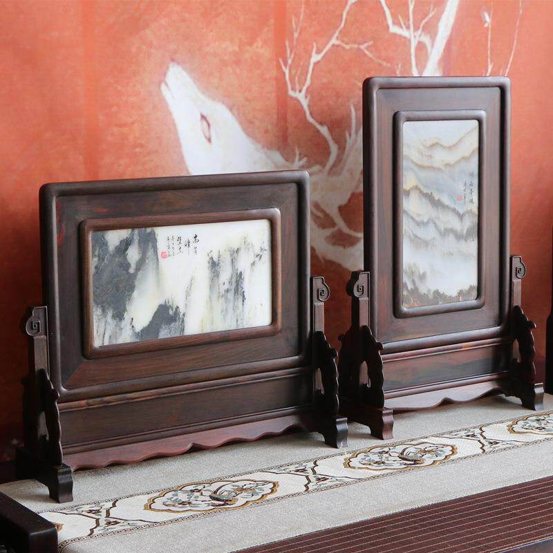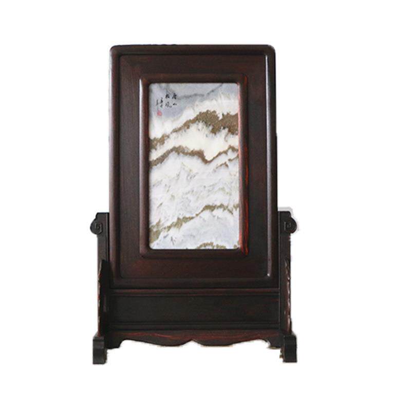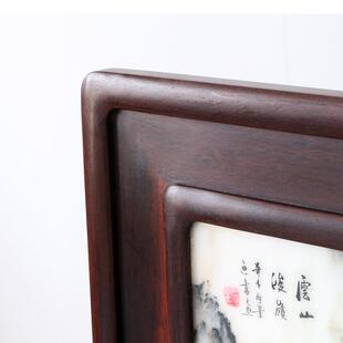 红木家具台大红酸枝嵌天然石画家插屏竖款 屏木质风摆件TP厂屏直销