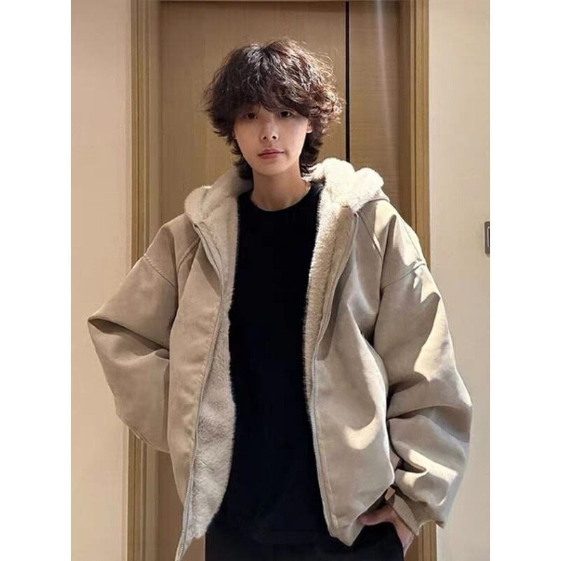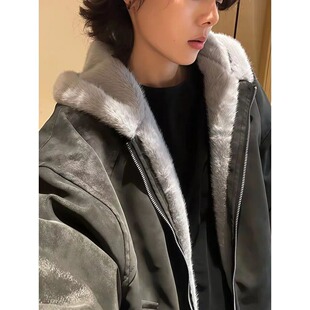 款 New 复古座山雕PU皮毛领情侣棉服男冬季 NB美式 棉衣外套 Bcfauae