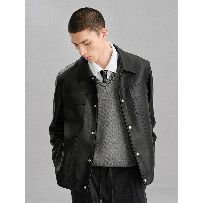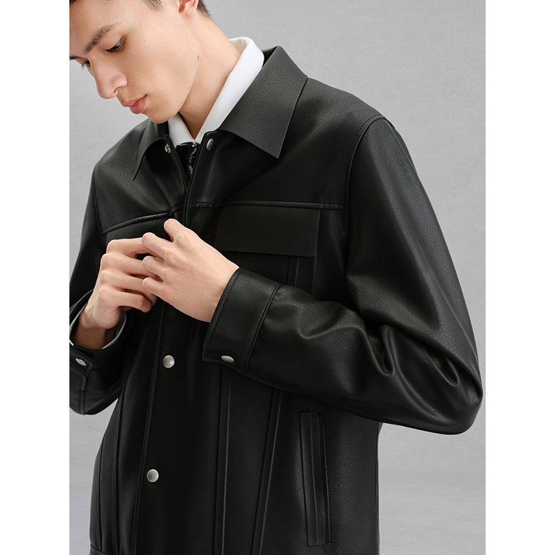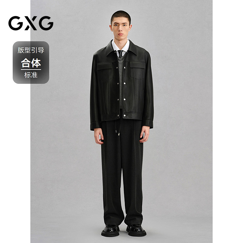 新品 GXG男装 真皮皮衣夹克男外套24冬季 工装 G24X124007 商场同款