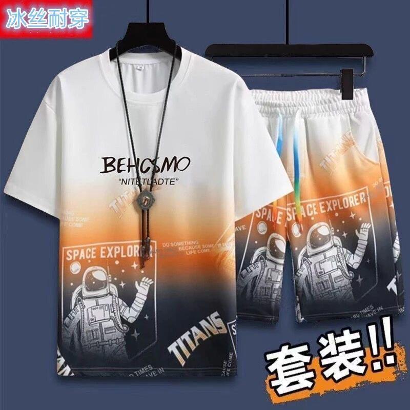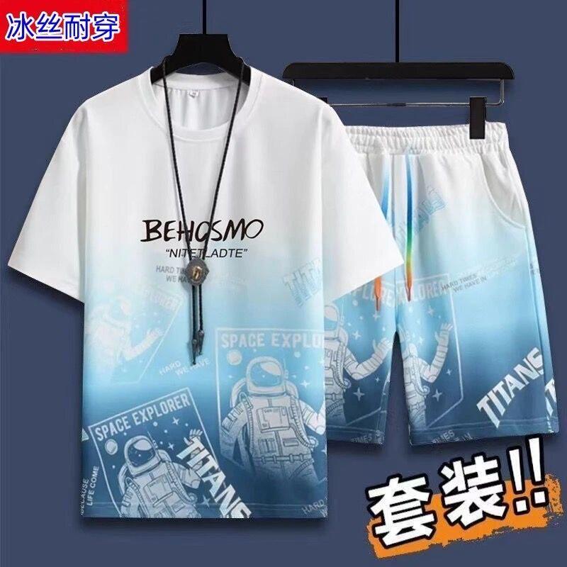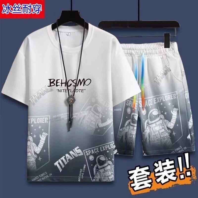 t恤2026新款 全棉纯棉休闲运动套装 短袖 冰丝男士 搭配帅气青 男夏季