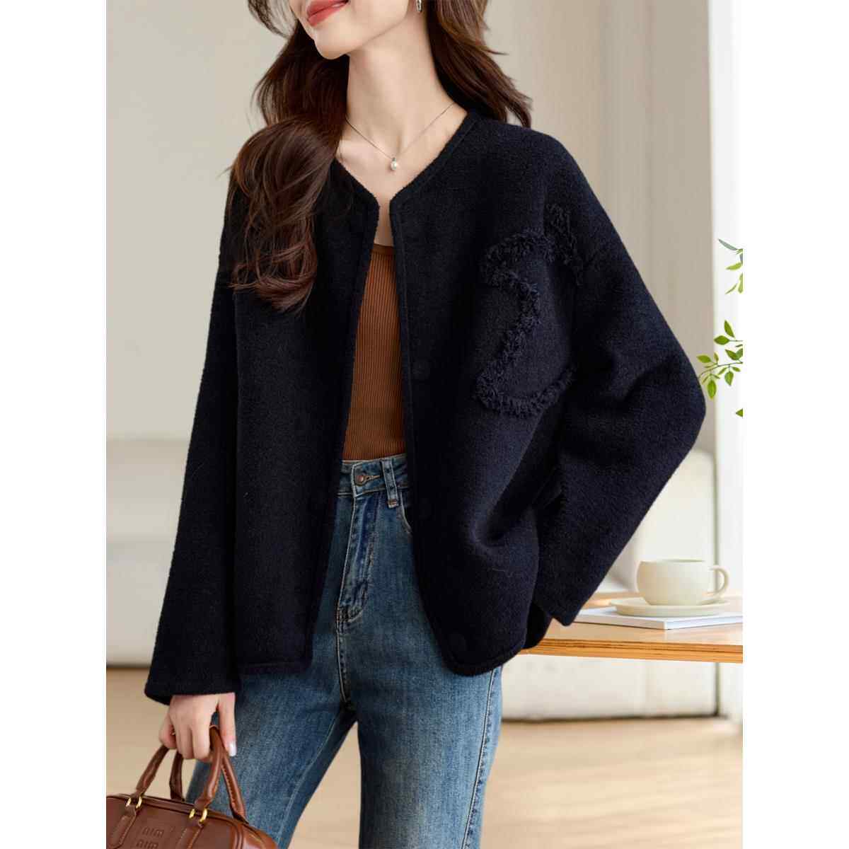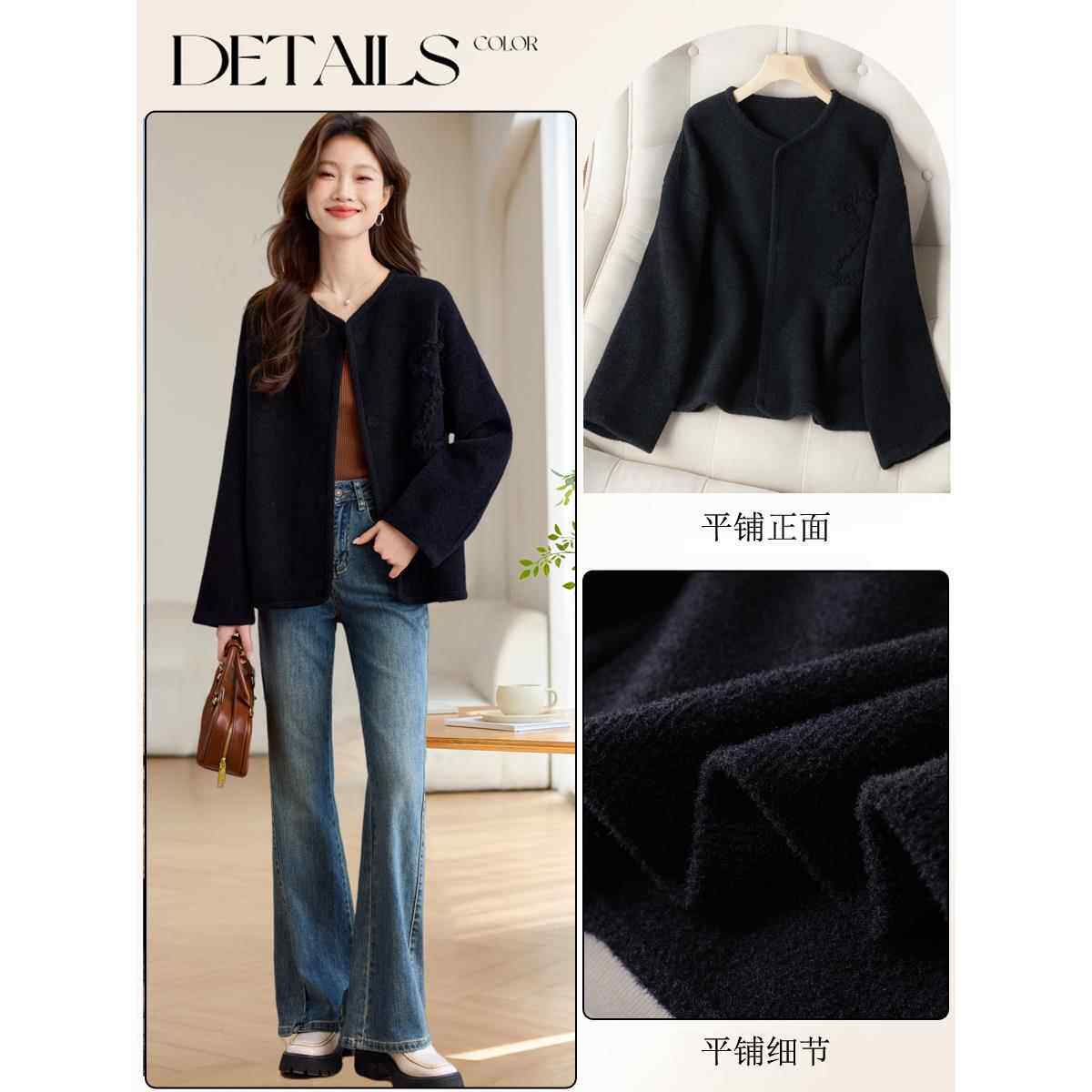 工作服休闲优雅女式 西式 上 高档羊毛外套宽松小众长袖 2025早秋新款