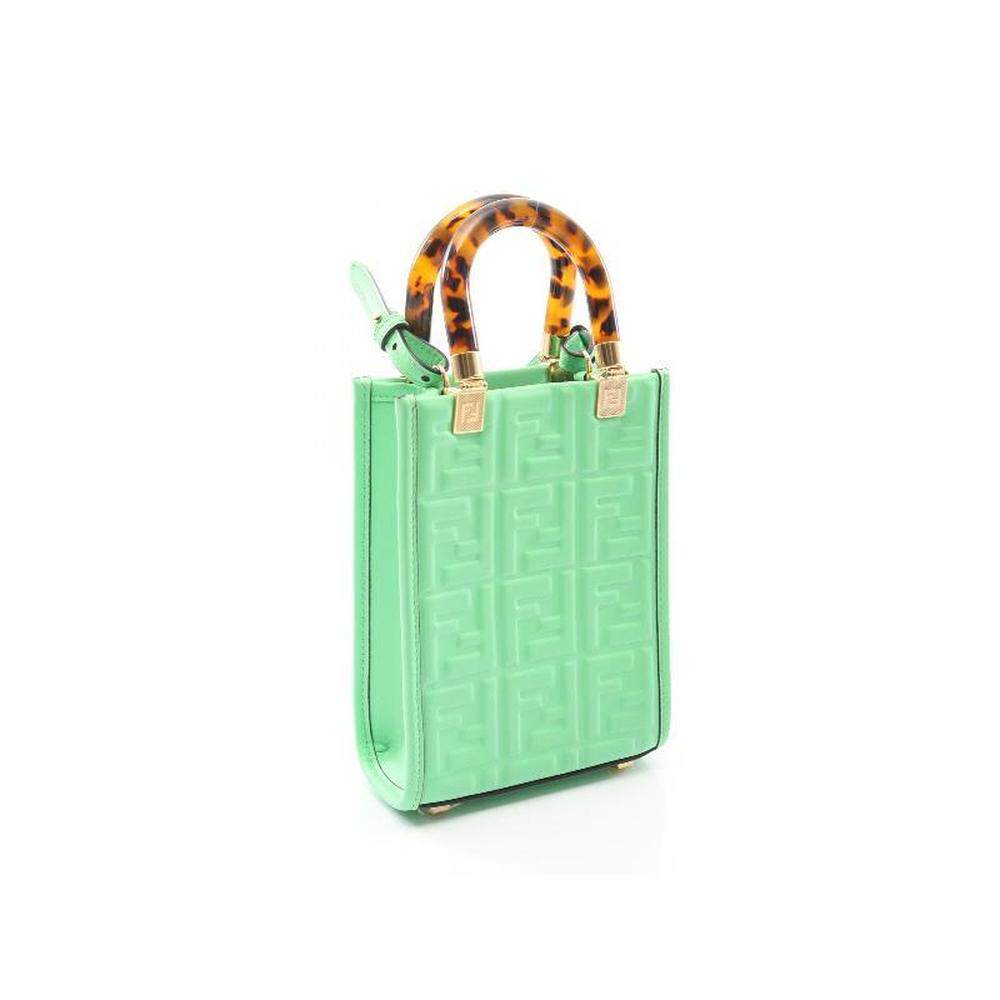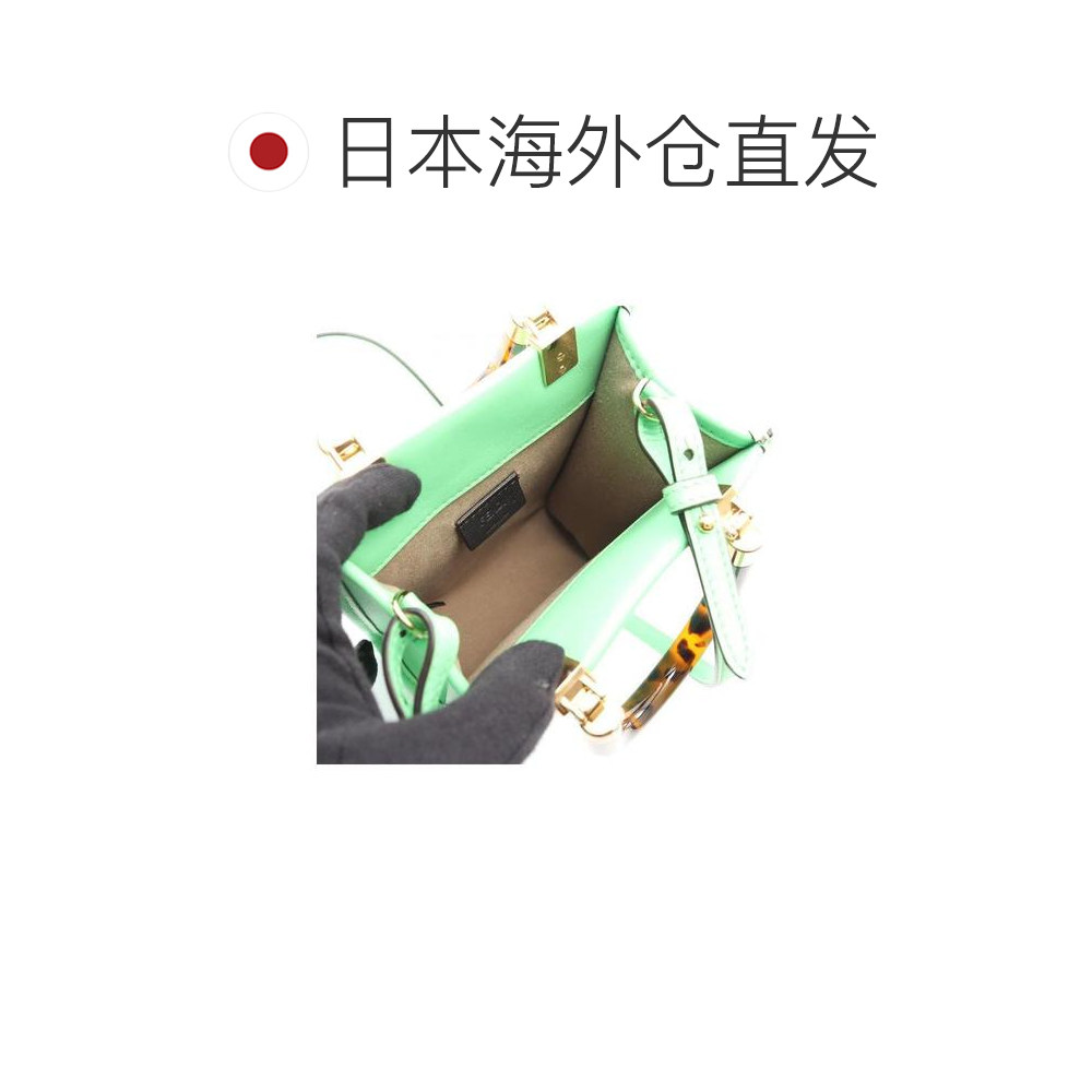 日本直邮中古Fendi芬迪女包A级95新sunshine阳光牛皮斜挎包绿色