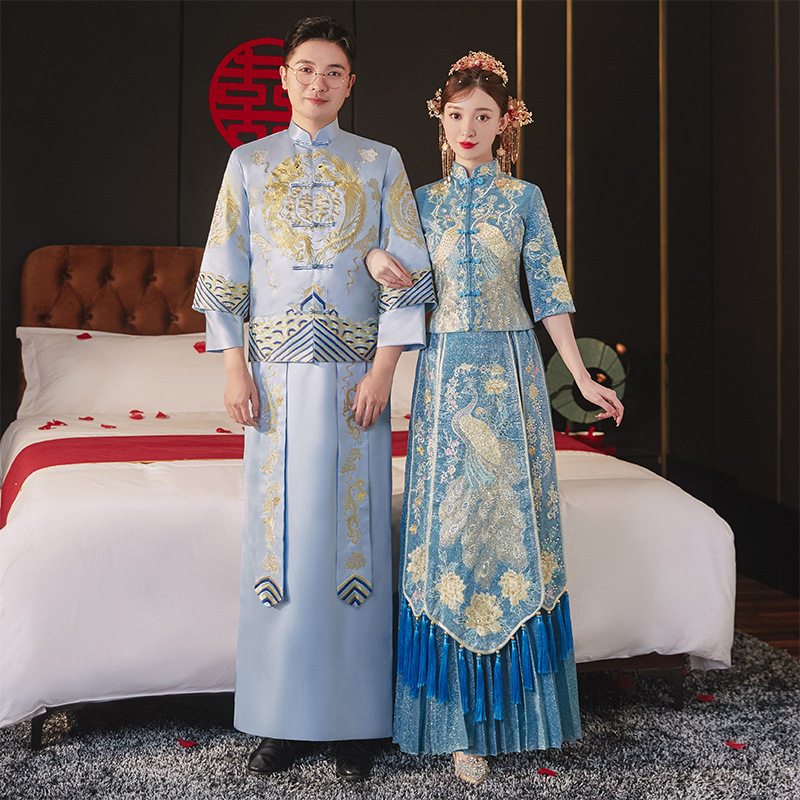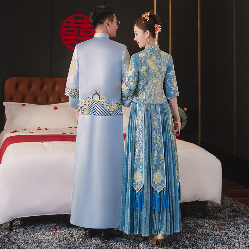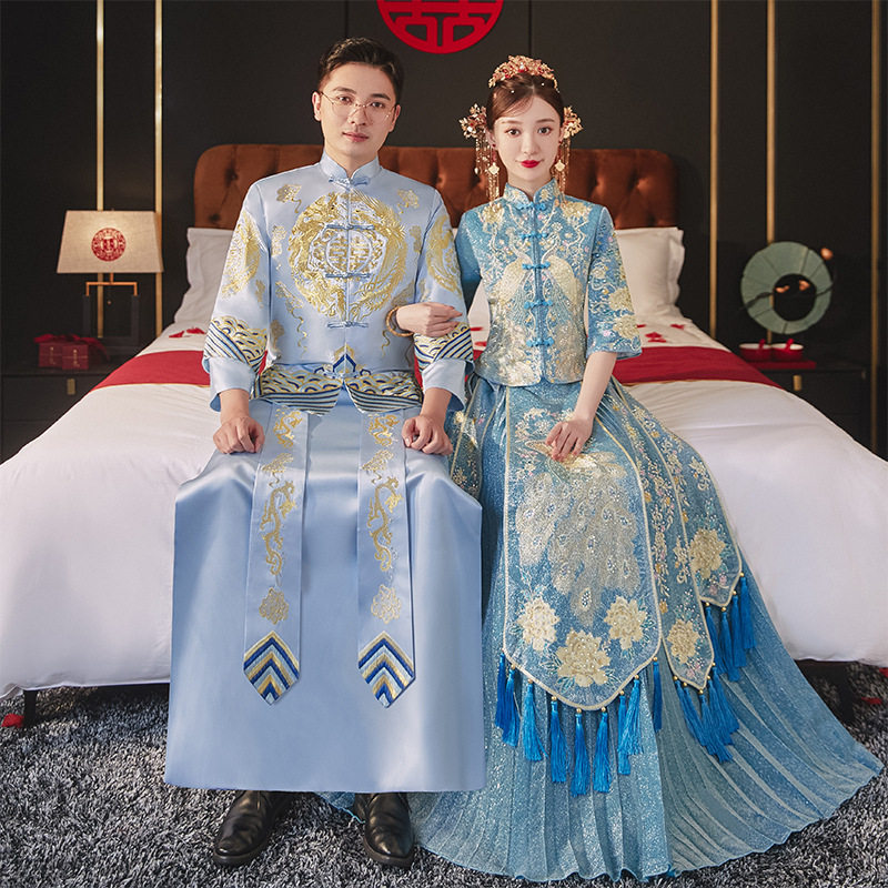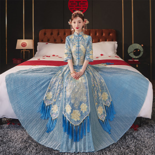 秀禾服2026年夏季 敬酒服 高定蓝色嫁衣秀和礼服龙凤褂喜服出阁新款