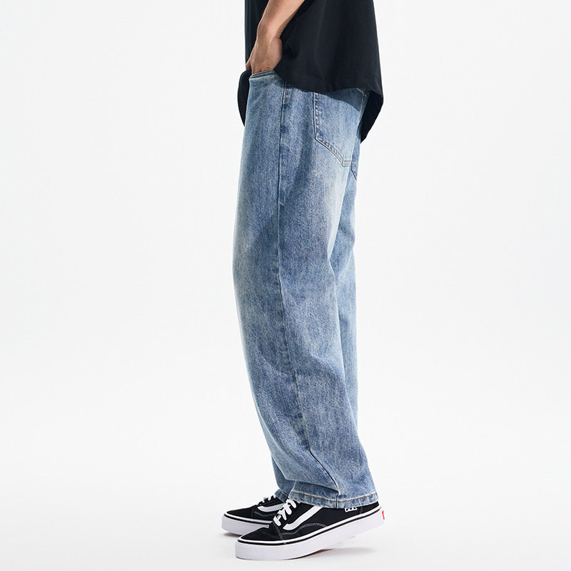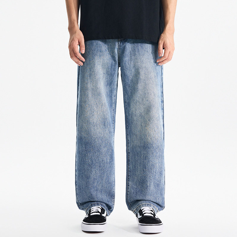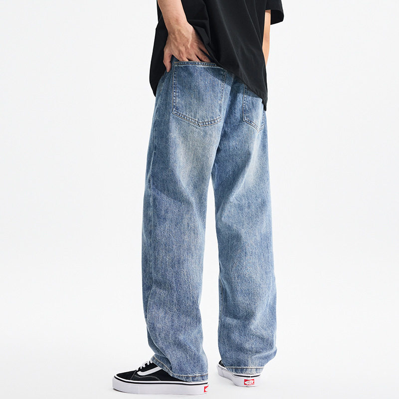 阔腿美式 浅蓝牛仔裤 男直筒宽松哈伦潮牌复古水洗加肥加大垂感长裤