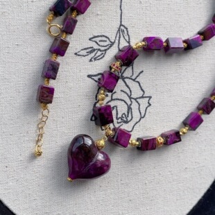 AZB13818 浅安 南非舒俱来丝绒四棱珠屁桃吊坠项链18k 45cm