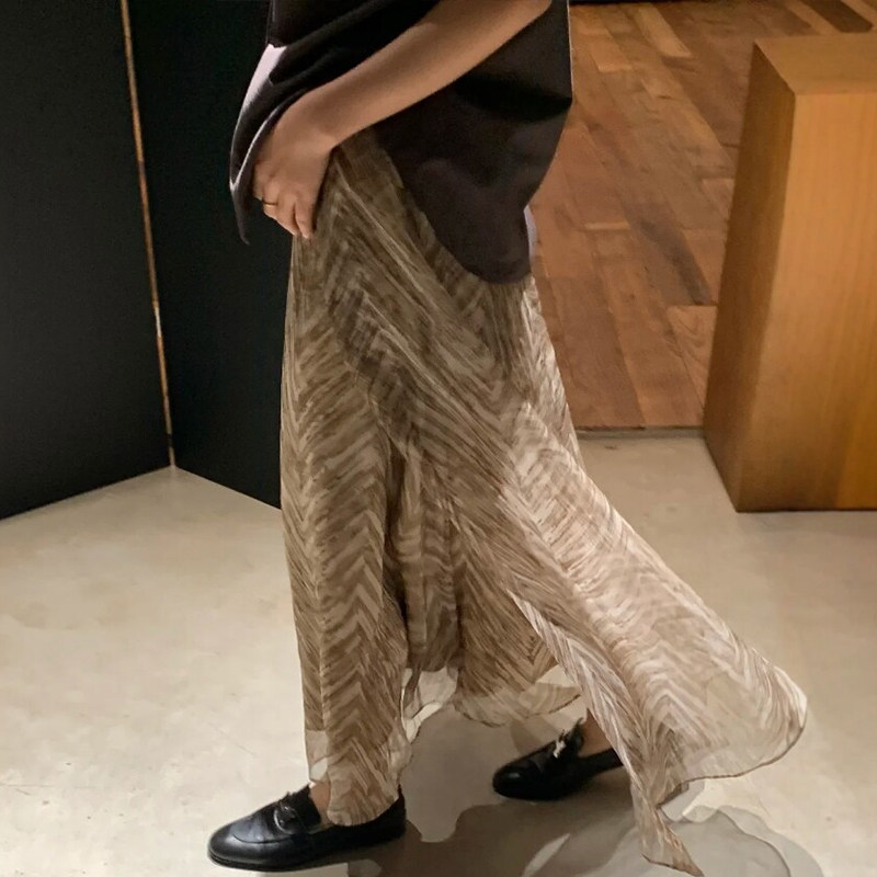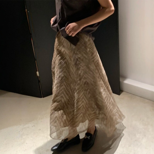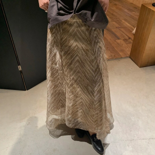欧根纱老钱风梨型身材伯克利裙子 女装 新中式 雪纺半身长裙春夏大码