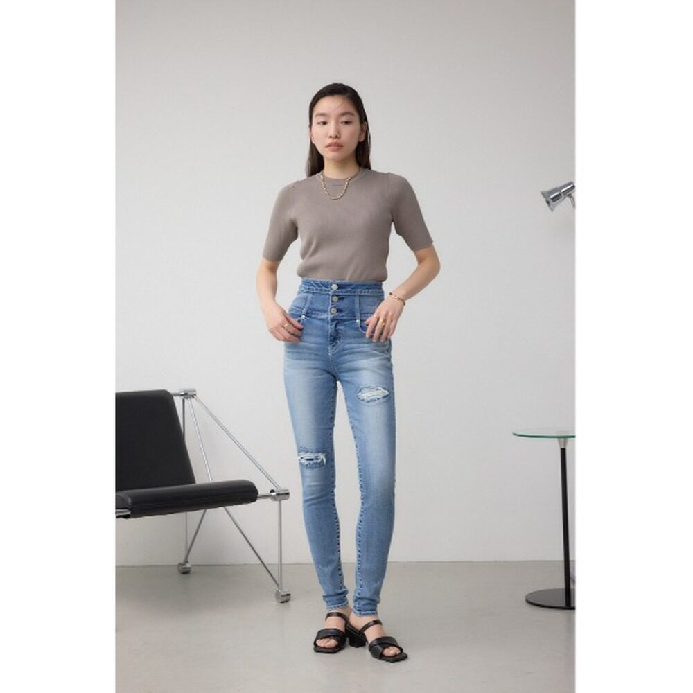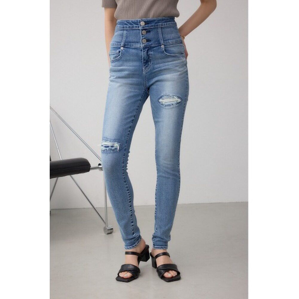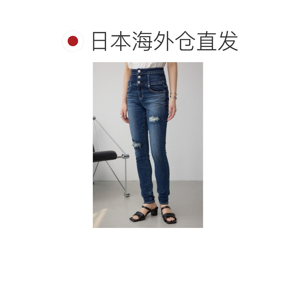 女士高腰纽扣修补紧身牛仔裤 MOUSSY 250IAC1203 日本直邮AZUL