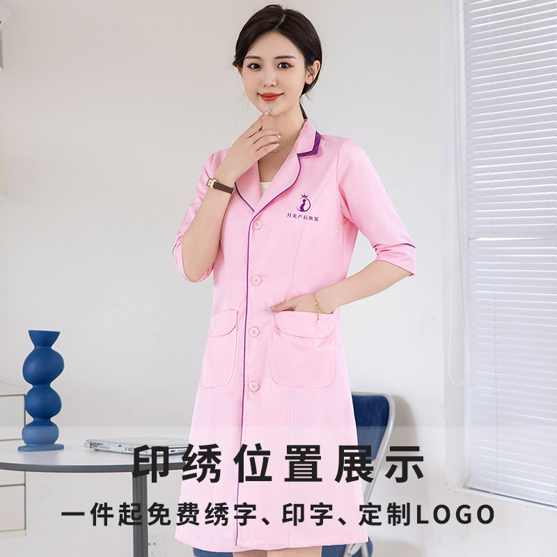 白大褂粉色美容院工作服女长中短袖 护士皮肤管理医生服纹绣美容师