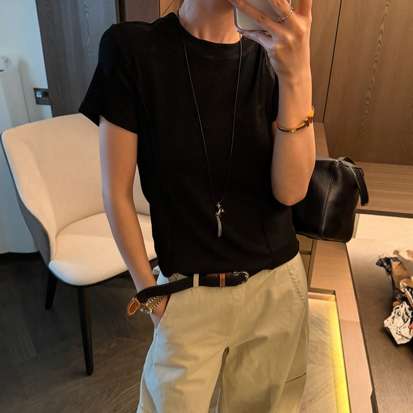 新款 T恤女欧洲站2026春装 欧货女装 时尚 潮 立体剪裁修身 打底衫 短袖