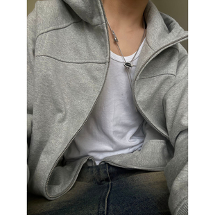 套头无帽小个子宽松圆领上衣N 新款 班尼路灰色短款 卫衣女2025秋季