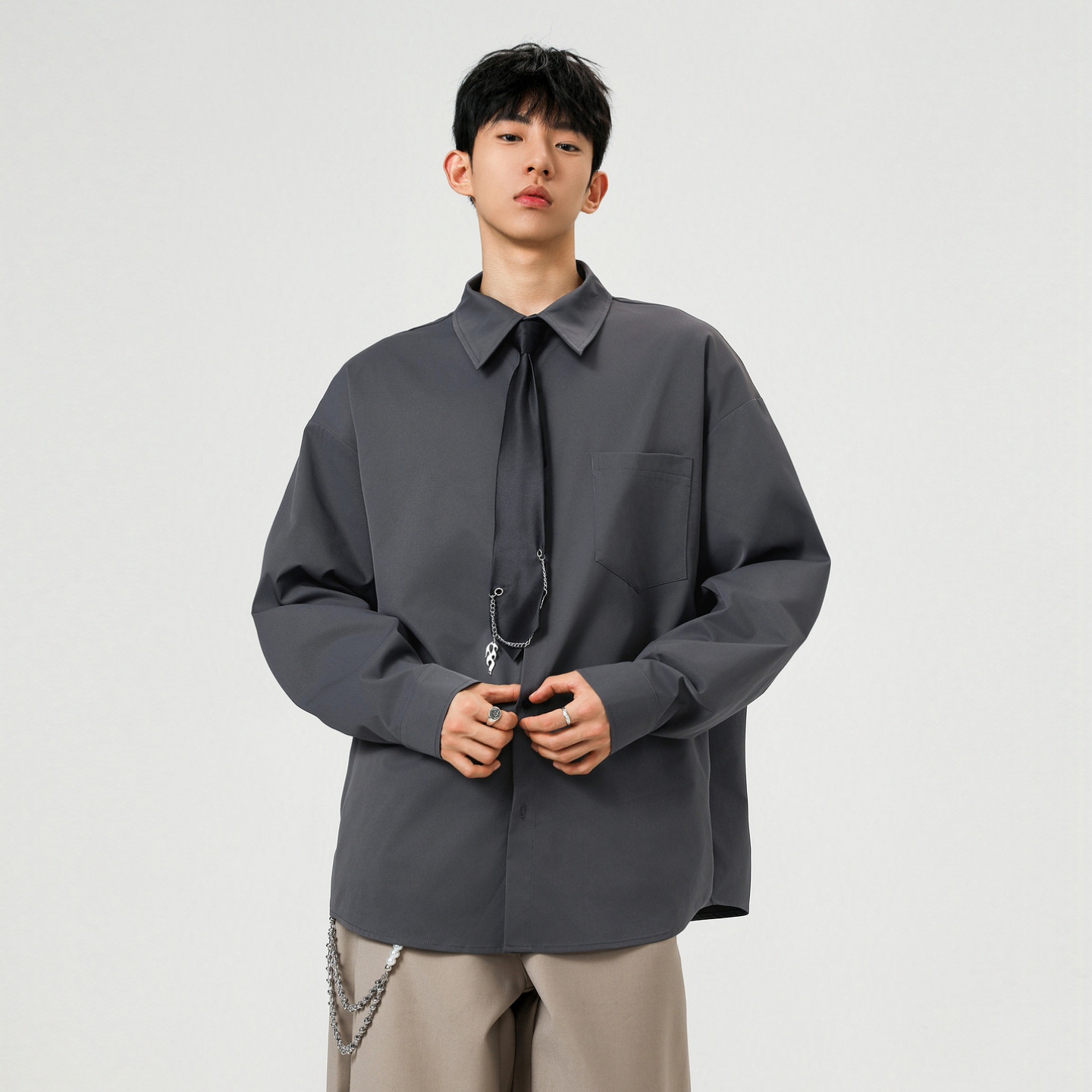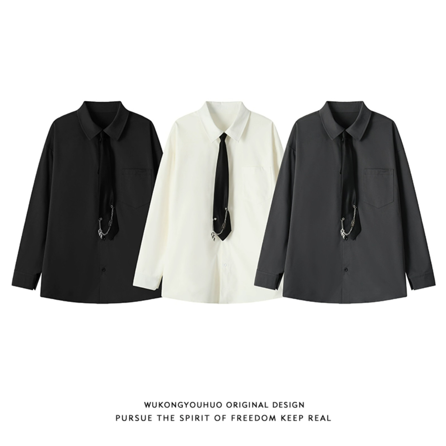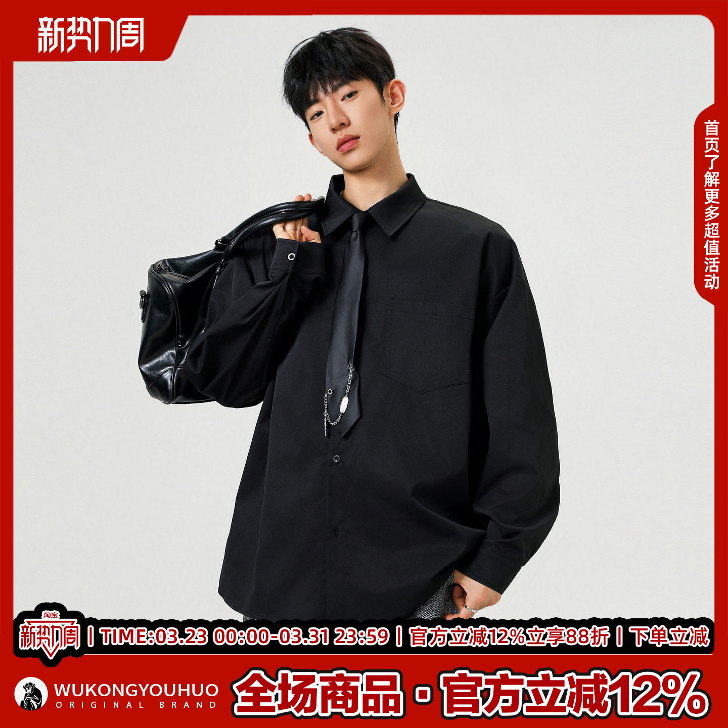 男女秋季 衬衫 宽松情侣百搭衬衣 复古纯色cleanfit长袖 悟空有货美式