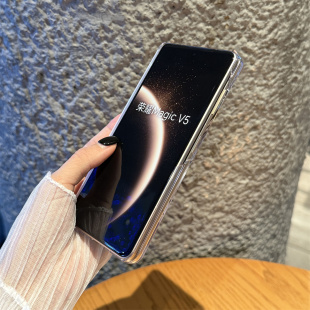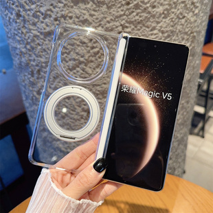 V3双中轴保护铰链360°旋转磁吸金属支架手机壳V2高级感高透透明防摔简约保护套男女款 适用于荣耀MagicV5