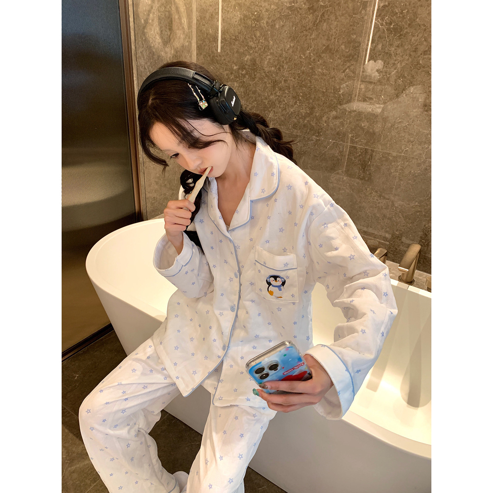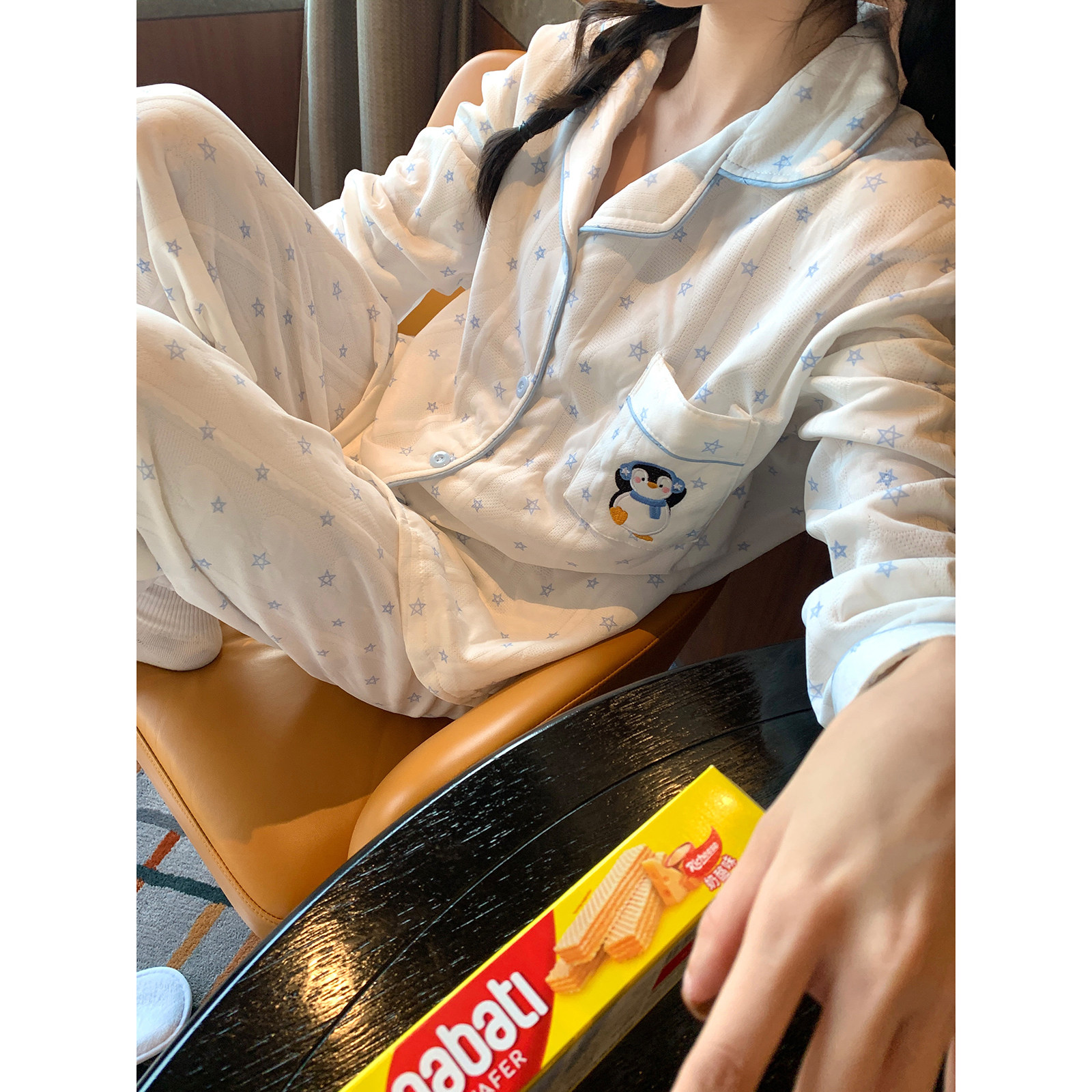 学生家居服套装 长袖 卡通企鹅星星夹棉睡衣女秋季 馨帮帮Homedress