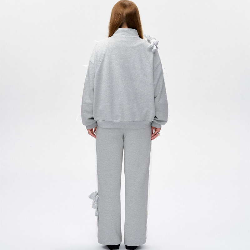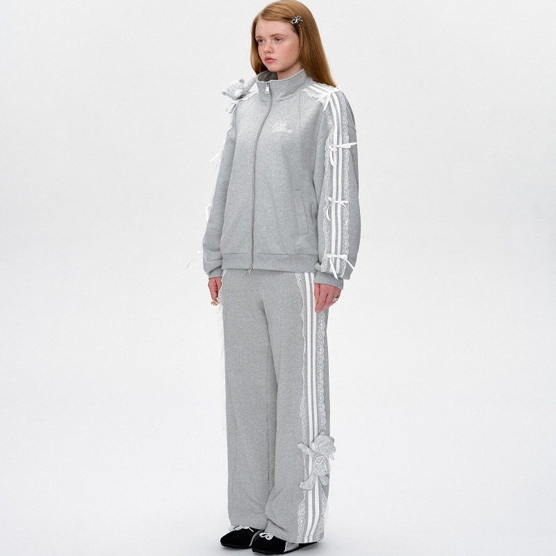 蕾丝拼接休闲直筒裤 MARZO 时尚 宽松长款 银泰百货300178 卫裤