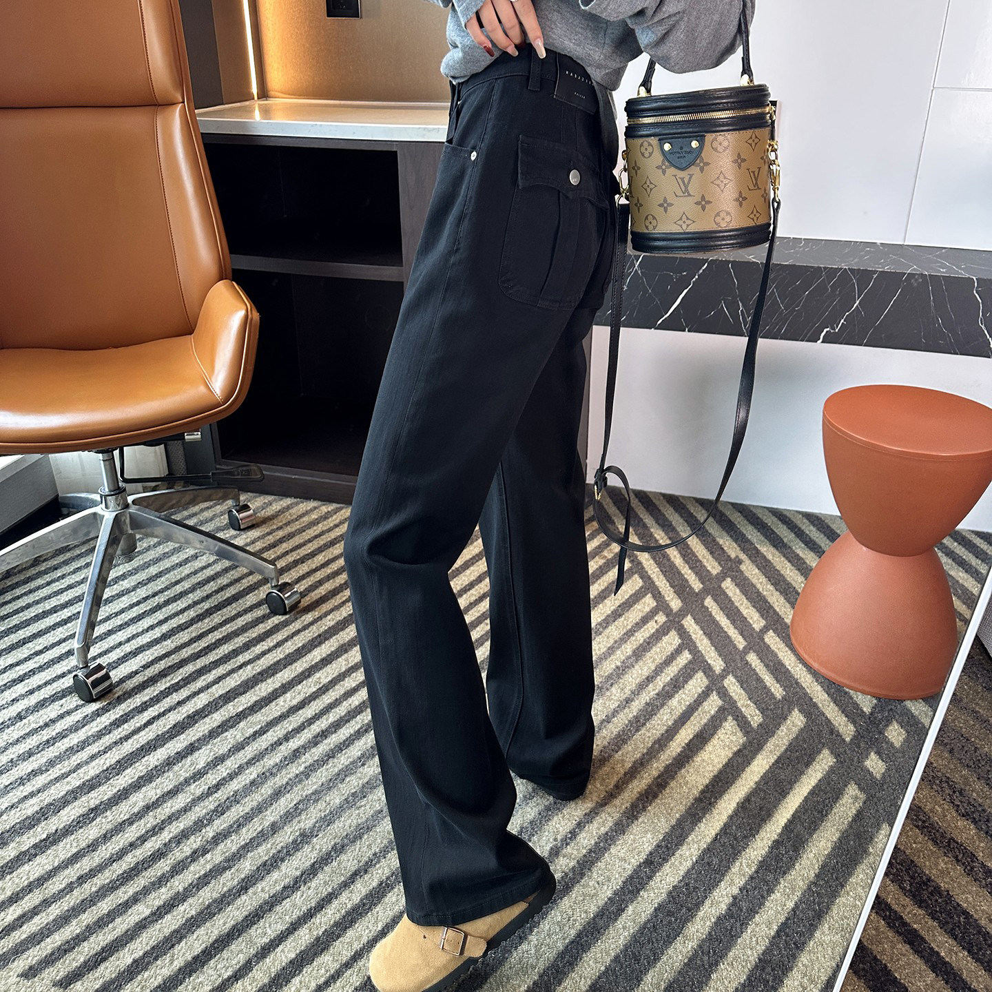 型天花板 新黑色宽松直筒拖地裤 四面弹窄版 女春季 阔腿牛仔裤 裤