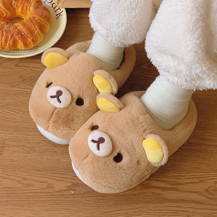 秋千 女冬外穿情侣防滑家居室内保暖棉鞋 2025新款 可爱轻松熊棉拖鞋
