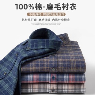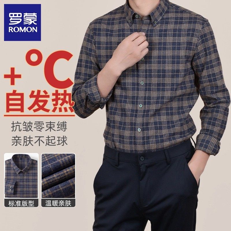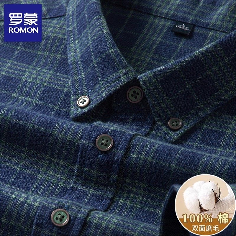 2025年秋冬新款 衬衫 易打理亲肤全棉格子衬衣 纯棉磨毛长袖 罗蒙男士