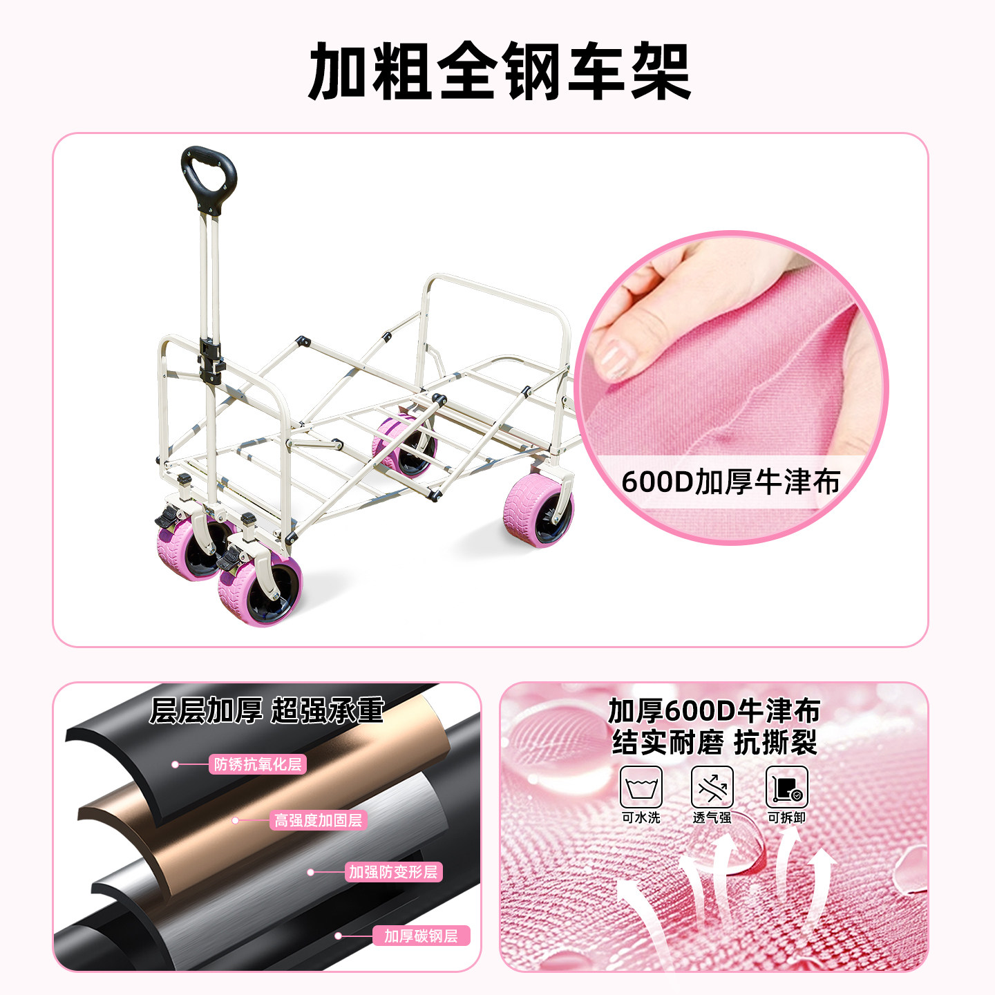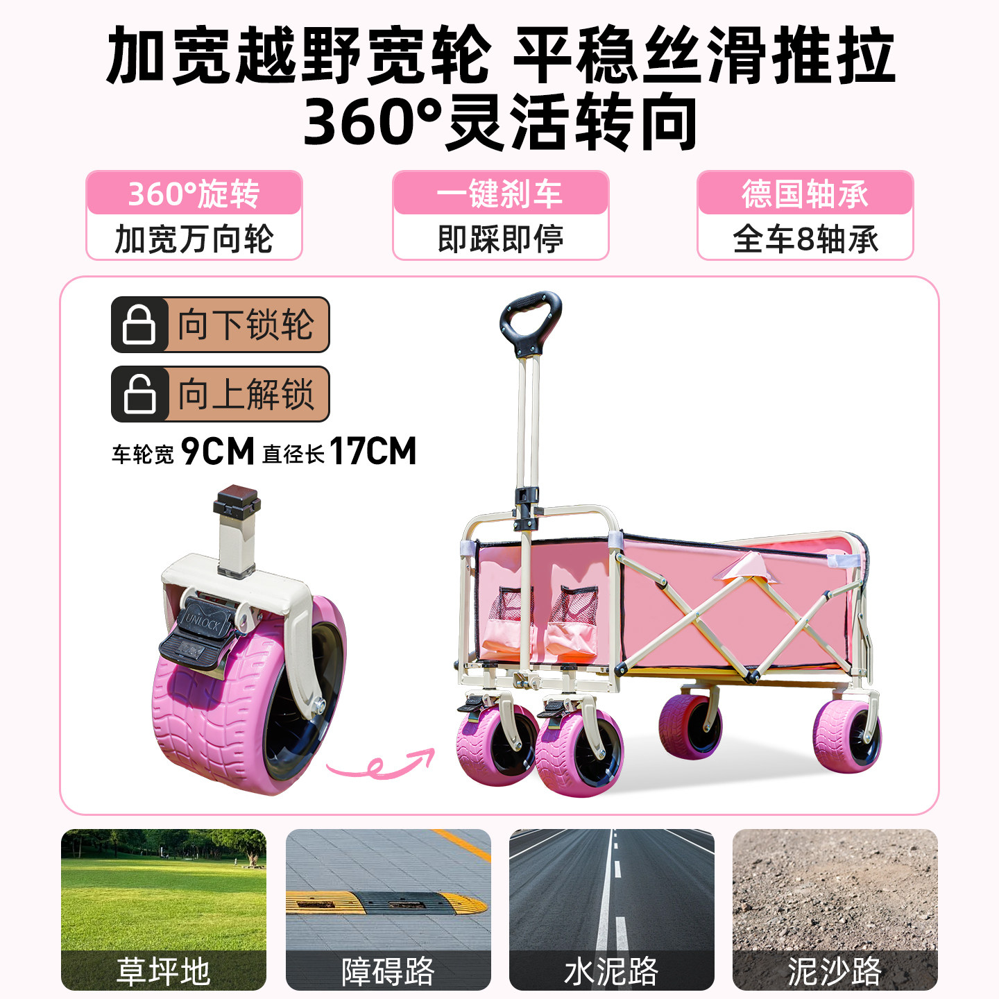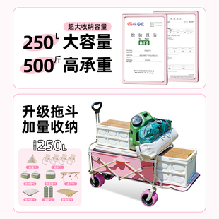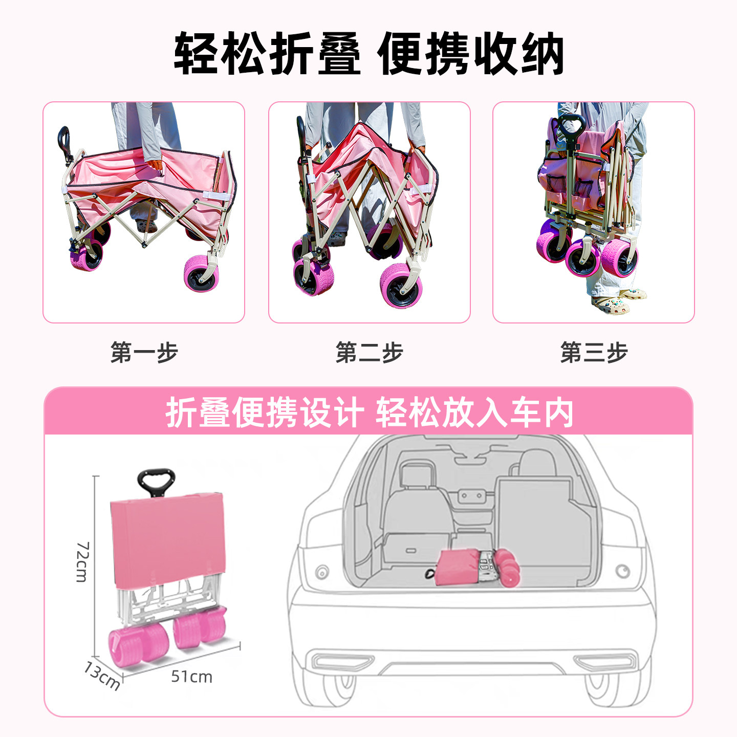 粉色露营车折叠摆摊小推车后开便携式 野餐营地车户外露营摆摊必备