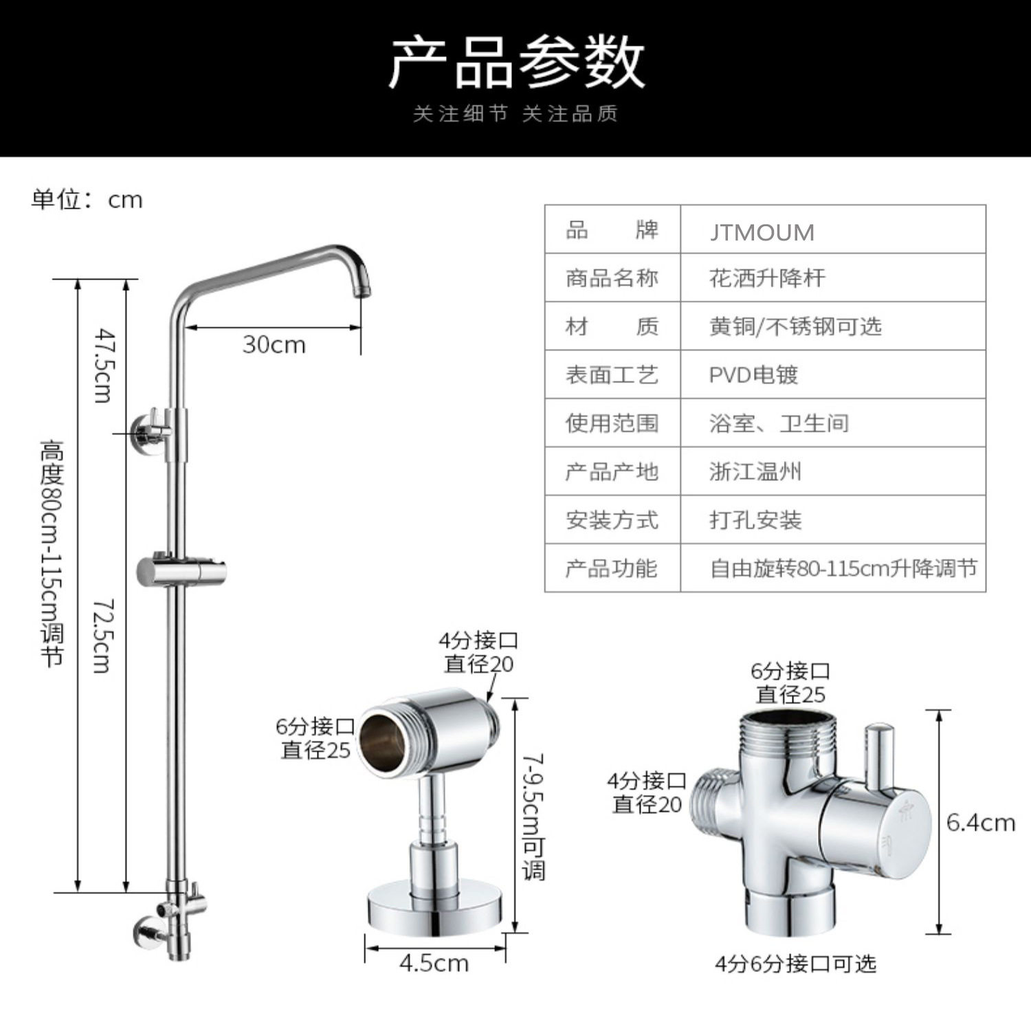 直扣升降杆花洒套件淋浴杆花洒支架可调节中叉莲蓬头喷头淋浴挂座