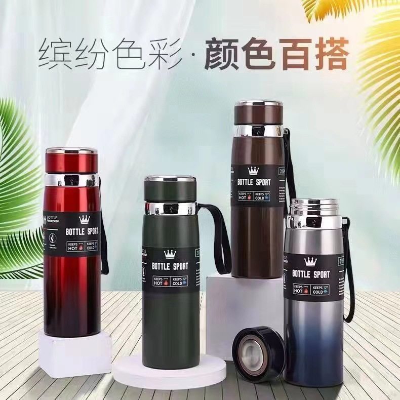 跨境商务316不锈钢大容量保温杯户外运动水壶吊带壶办公水杯