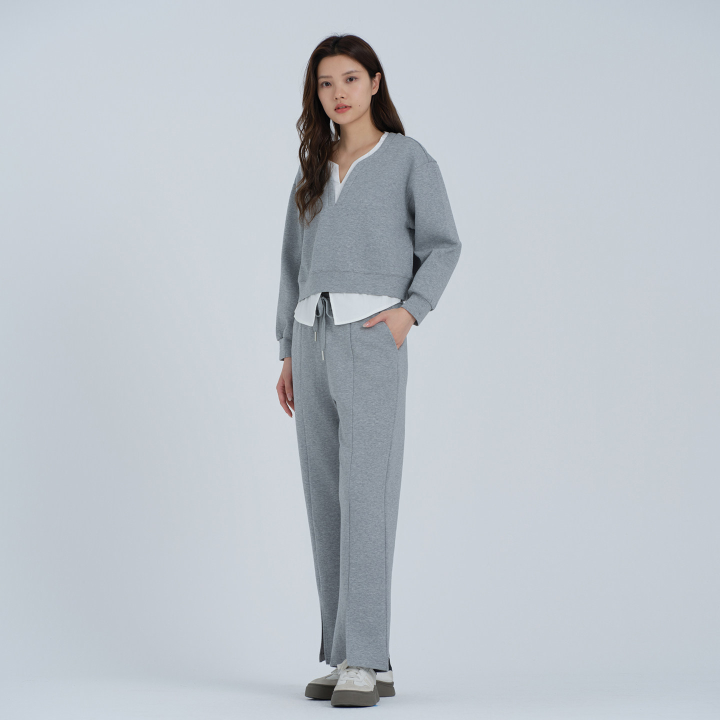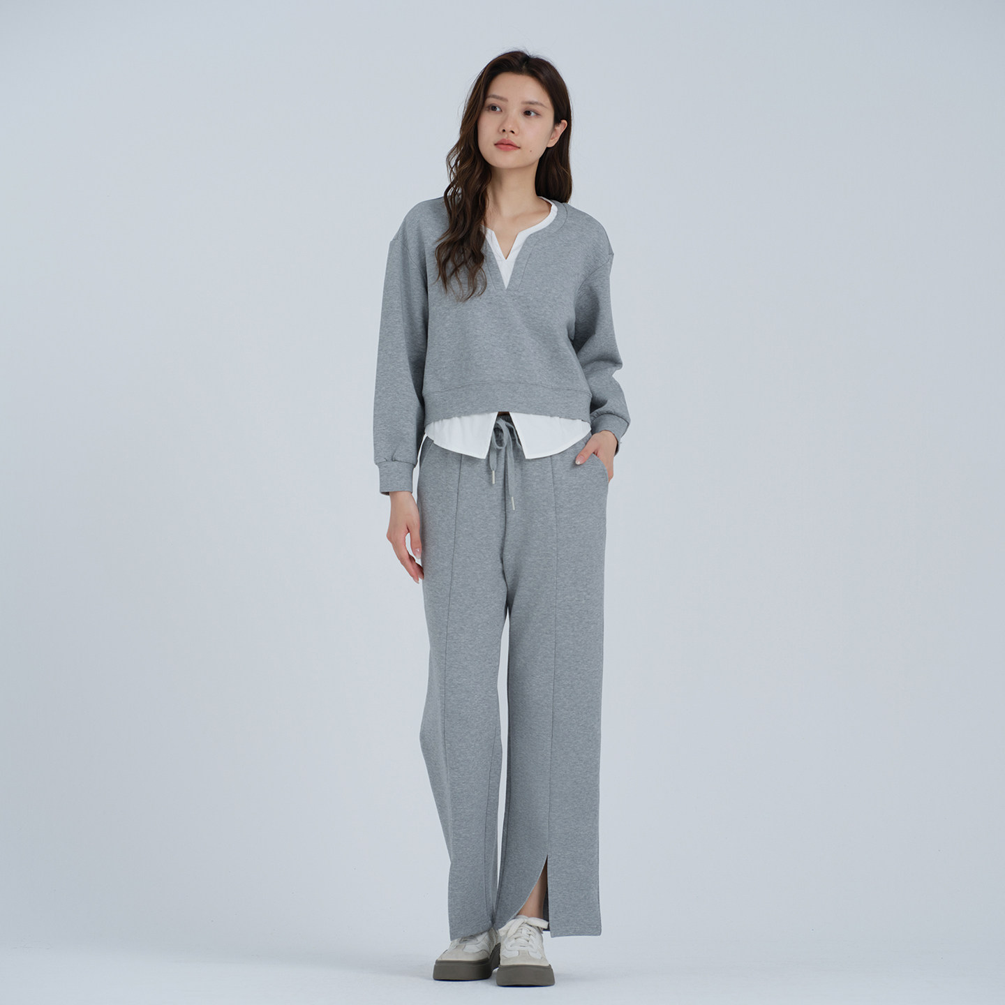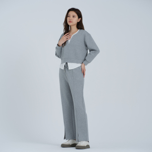 慵懒风休闲两件套假两件上衣通勤阔腿裤 阿依莲时尚 新款 女秋季 套装
