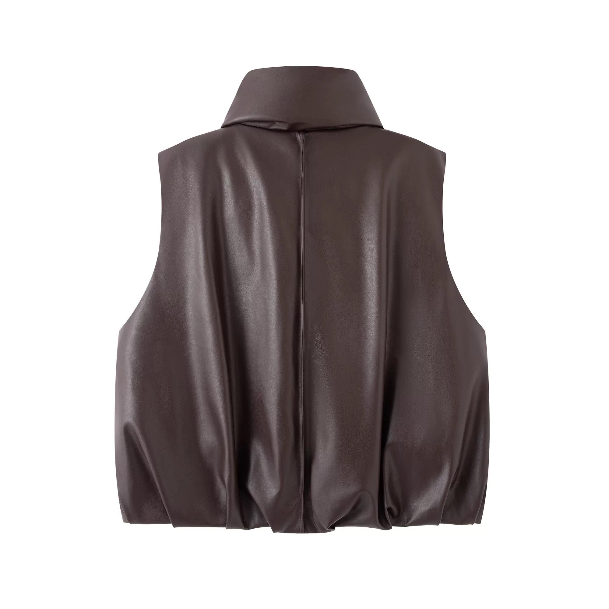 2025秋季 PU皮衣无袖 新款 气质百搭宽松立领无袖 羽绒马甲 时尚 艾系