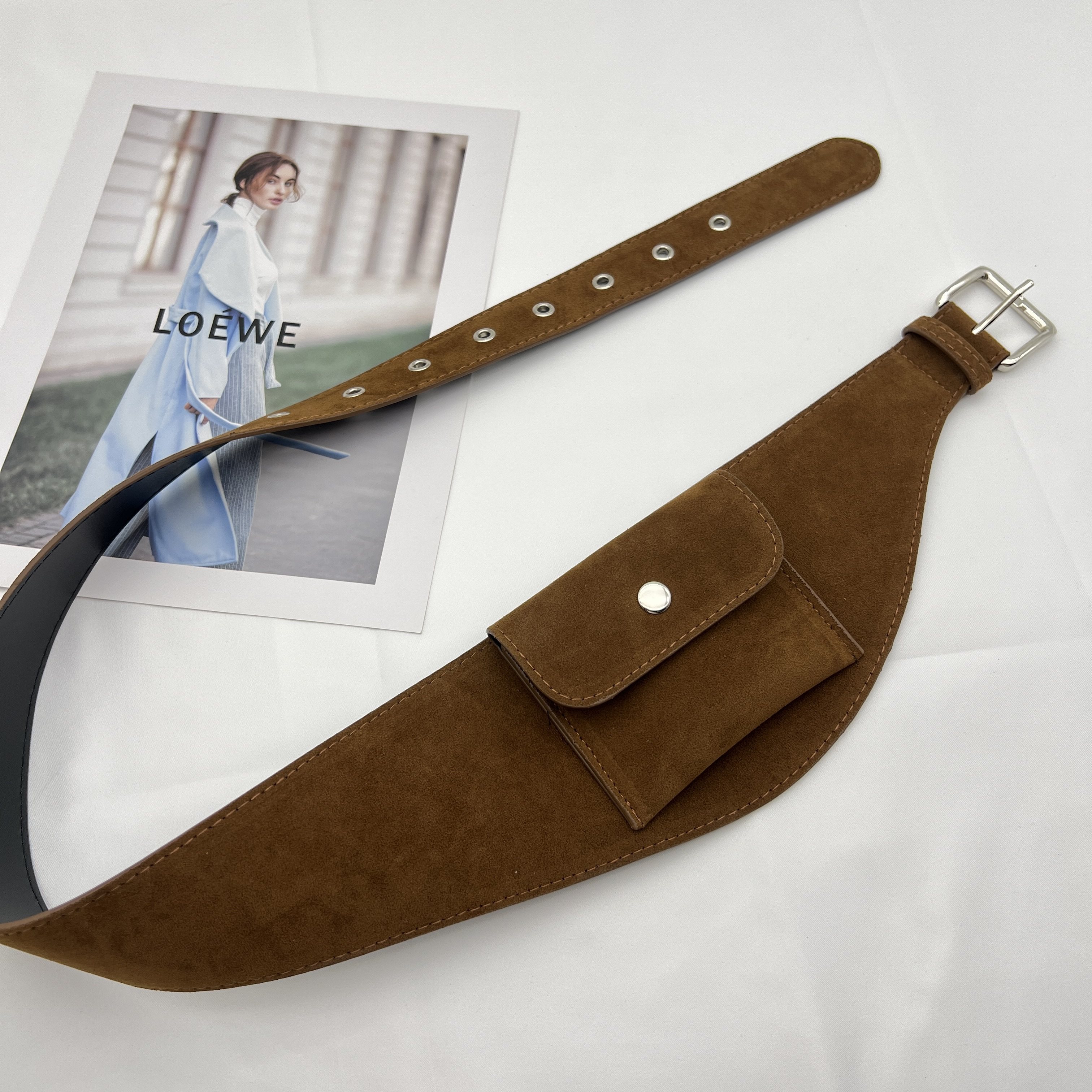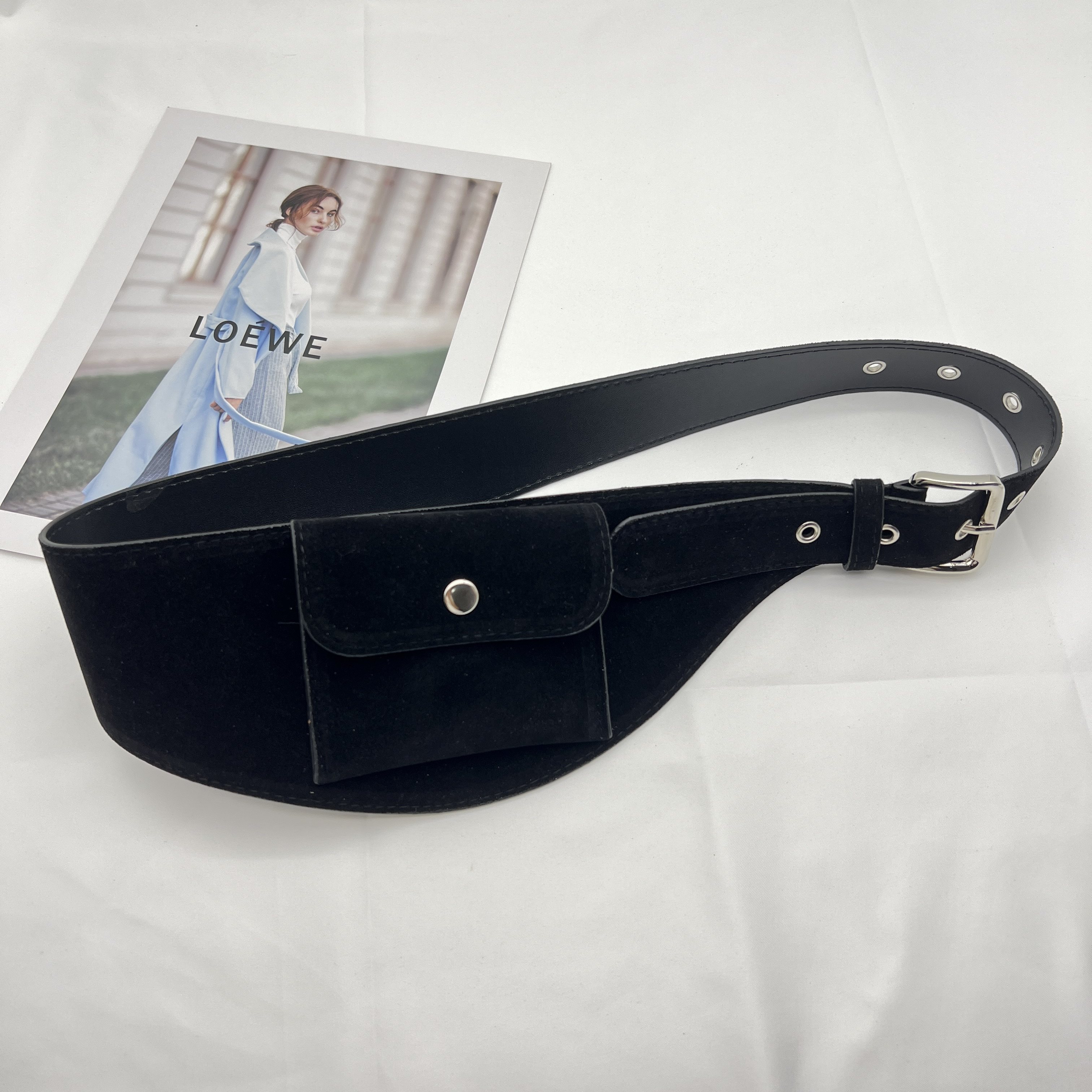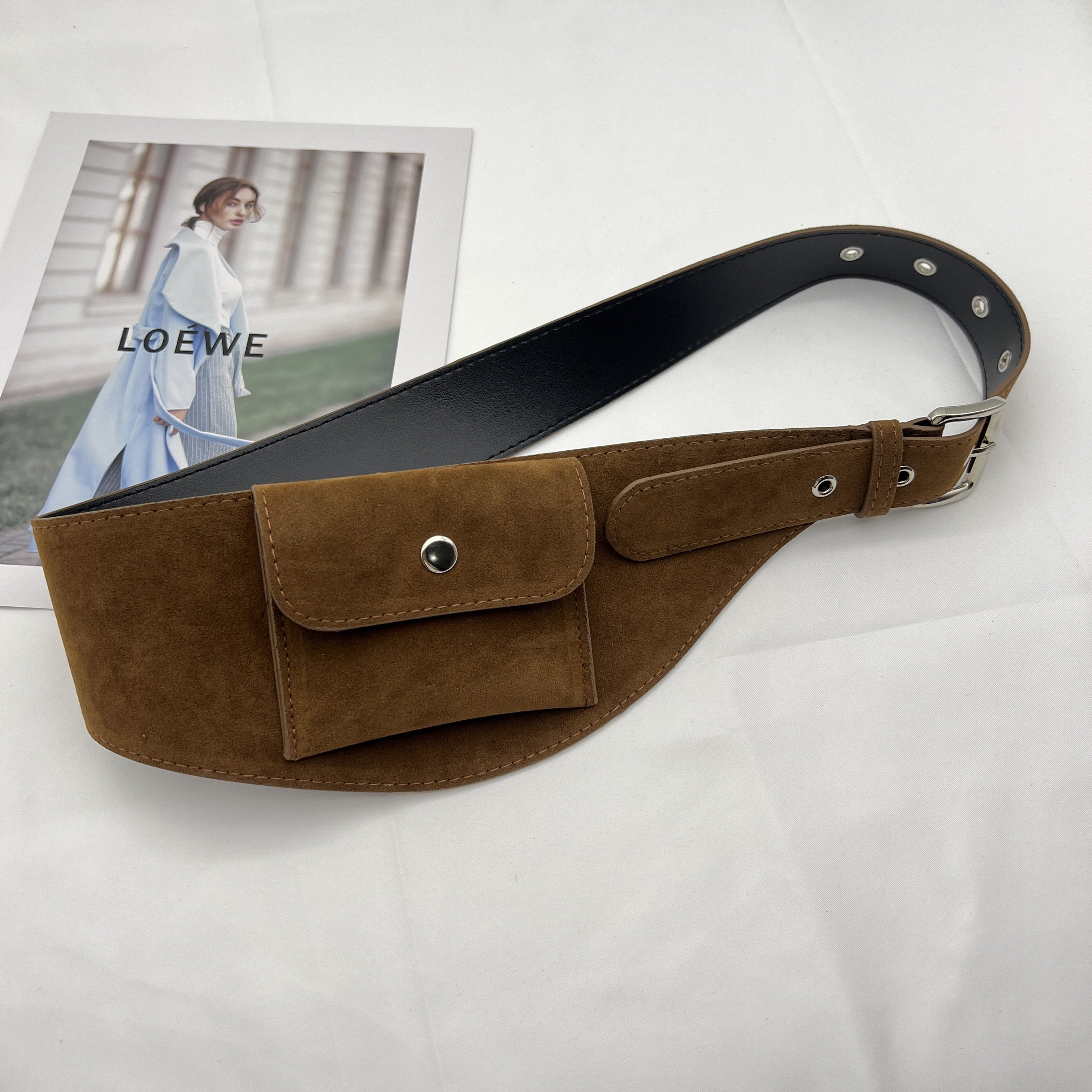 韩国新款 高级感皮带包配裙子百搭腰封 棕色麂皮绒宽腰带女2025新款