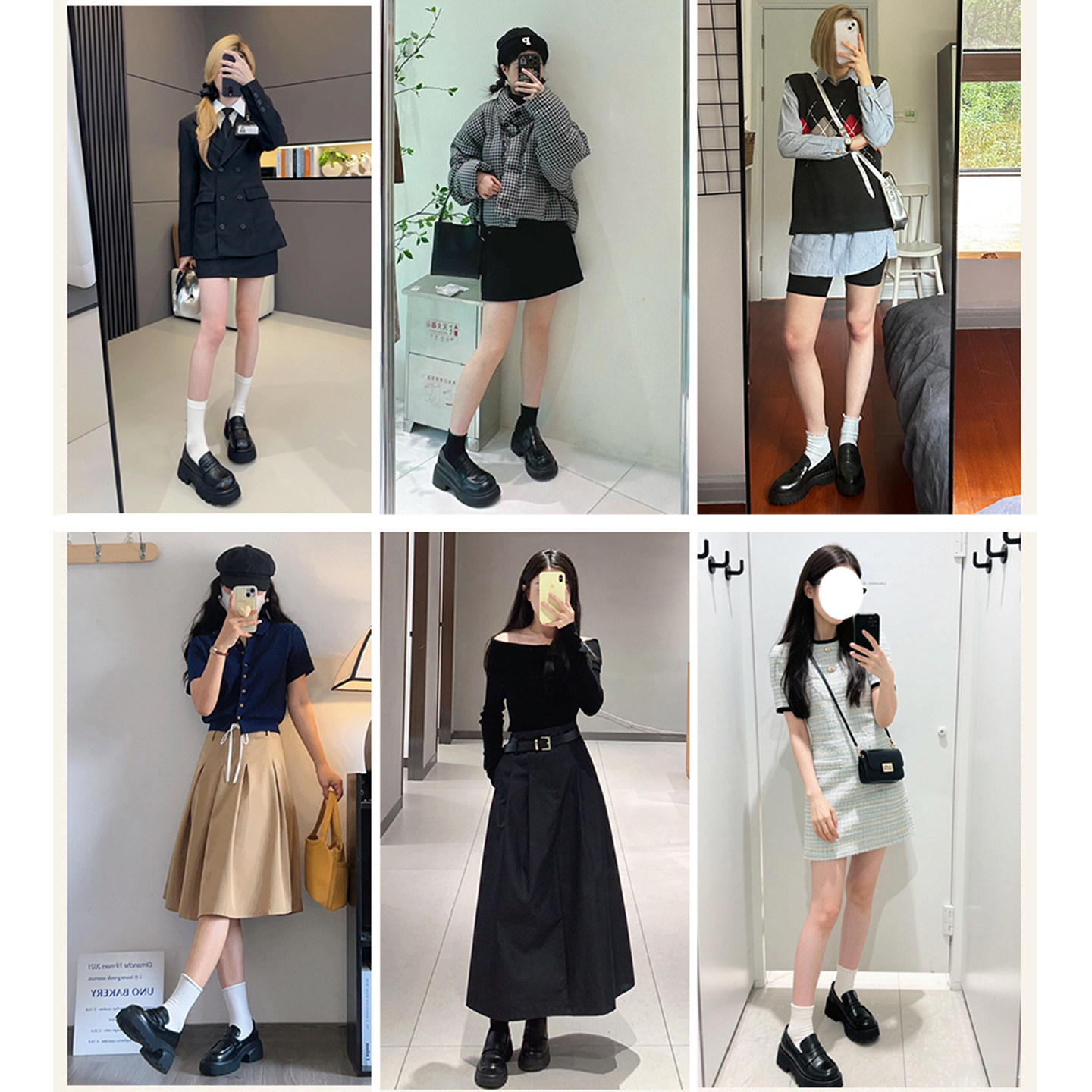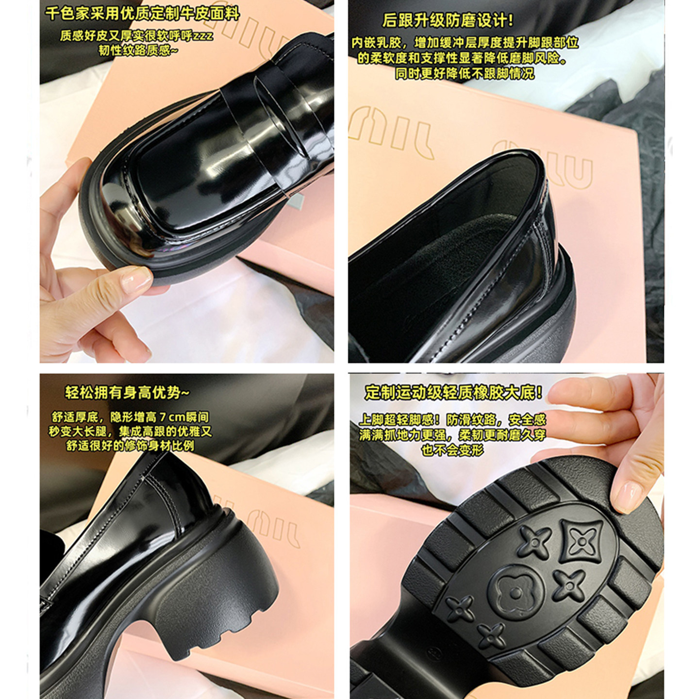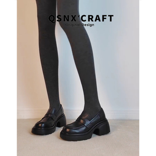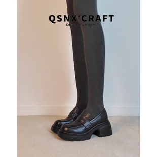 英伦风小皮鞋 牛皮版 黑色通勤高跟单鞋 女2025新款 厚底增高乐福鞋