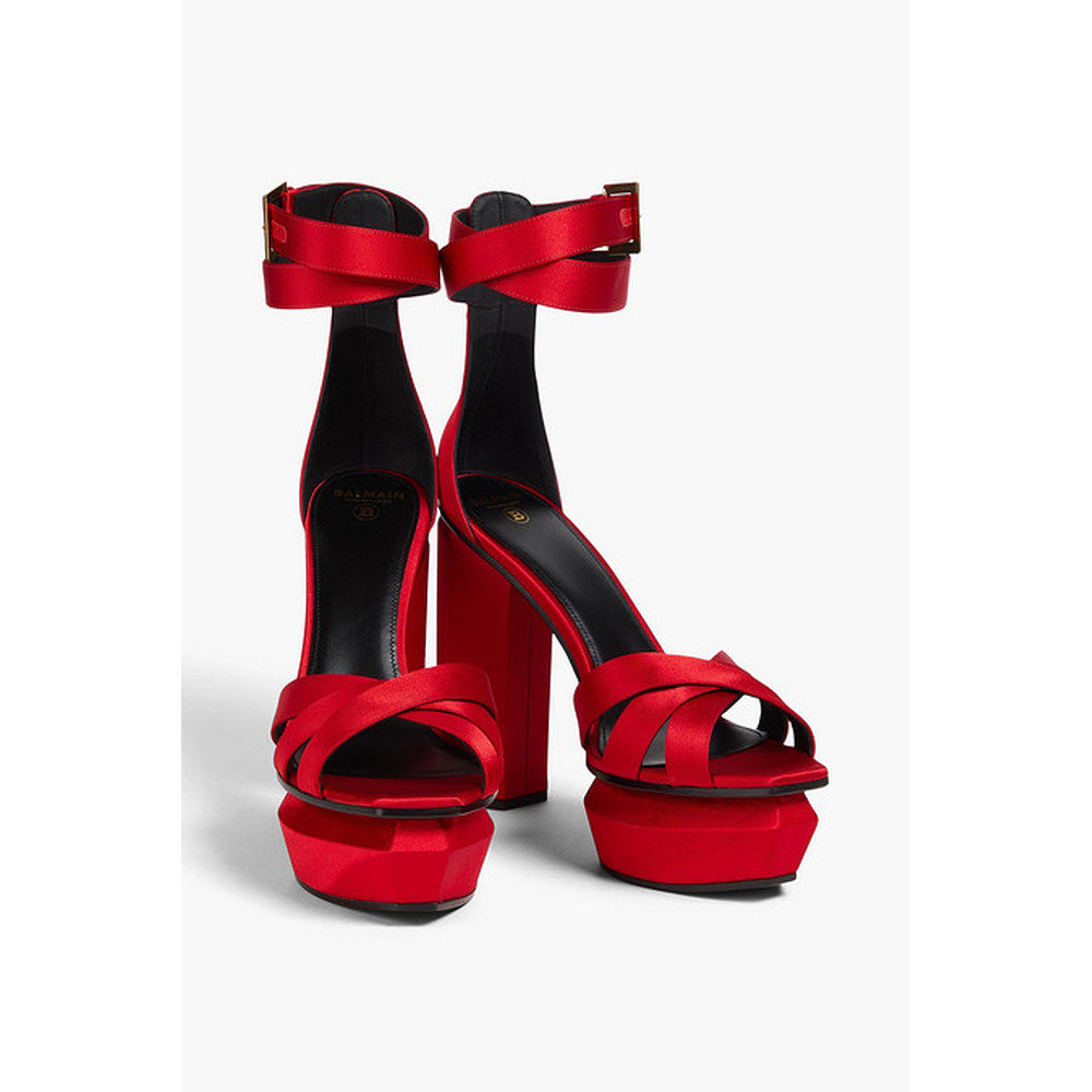 巴尔曼 Balmain 女士 Ava 1h可退 绸缎防水台凉鞋 香港直邮潮奢