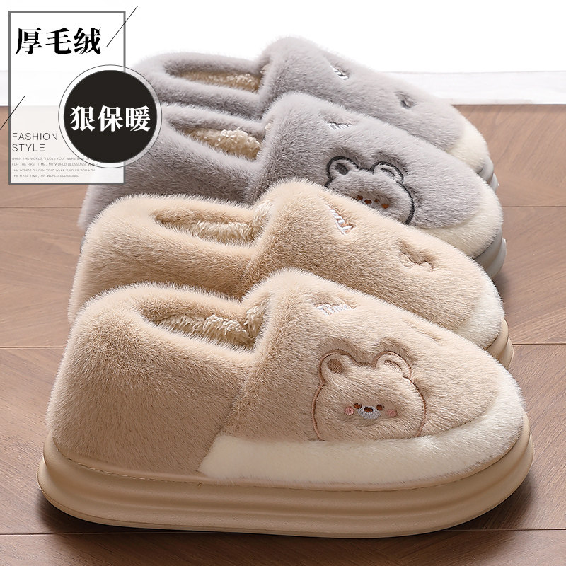 男 防滑防水静音厚底居家毛毛拖情侣棉鞋 买一送一女士秋冬季 棉拖鞋