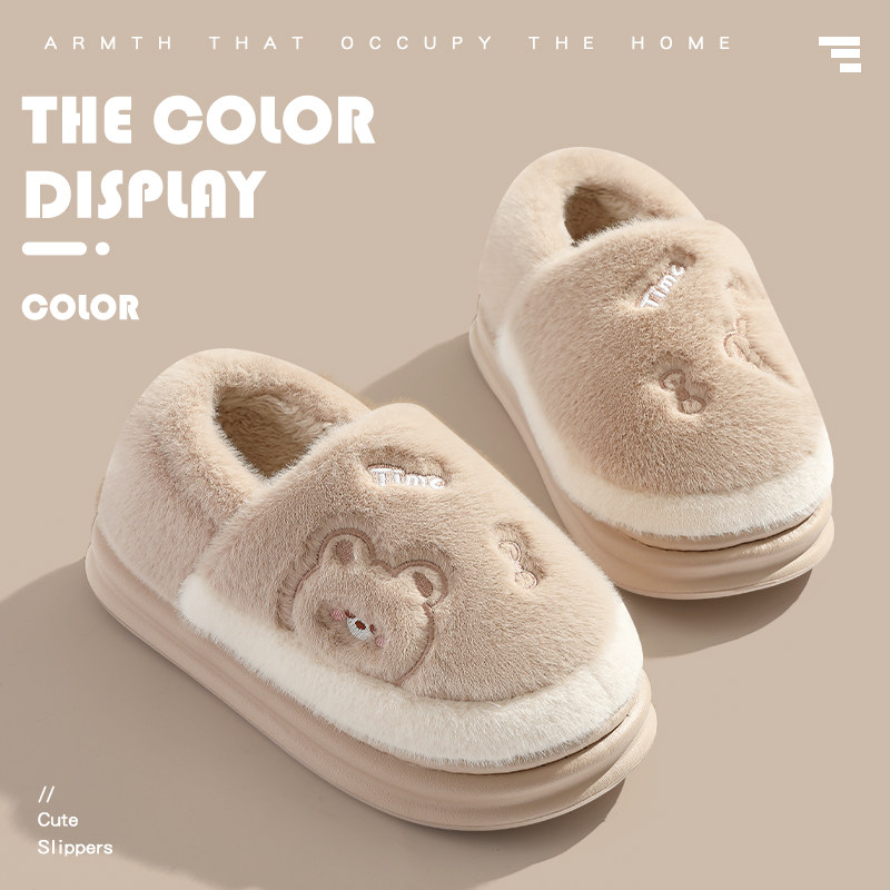 假日 外穿防滑厚底居家保暖棉鞋 可爱米菲兔包跟加绒棉拖鞋 女秋冬季