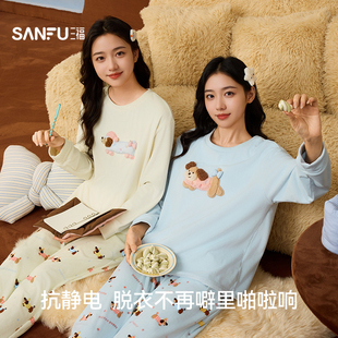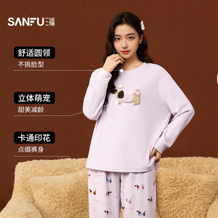 海岛绒抗静电保暖多巴胺宽松睡衣套装 三福家居服女2025年冬季 新款