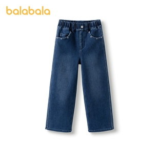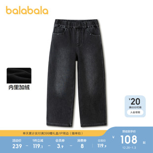 子 梨型身材裤 蓝灰直筒牛仔裤 女秋冬加绒胖妹妹mm高腰显瘦阔腿长裤