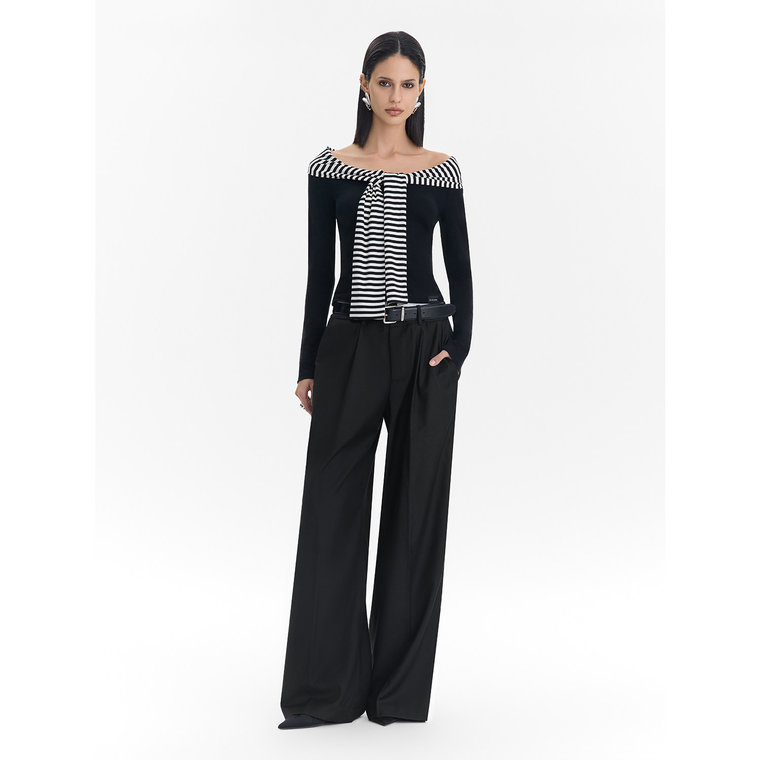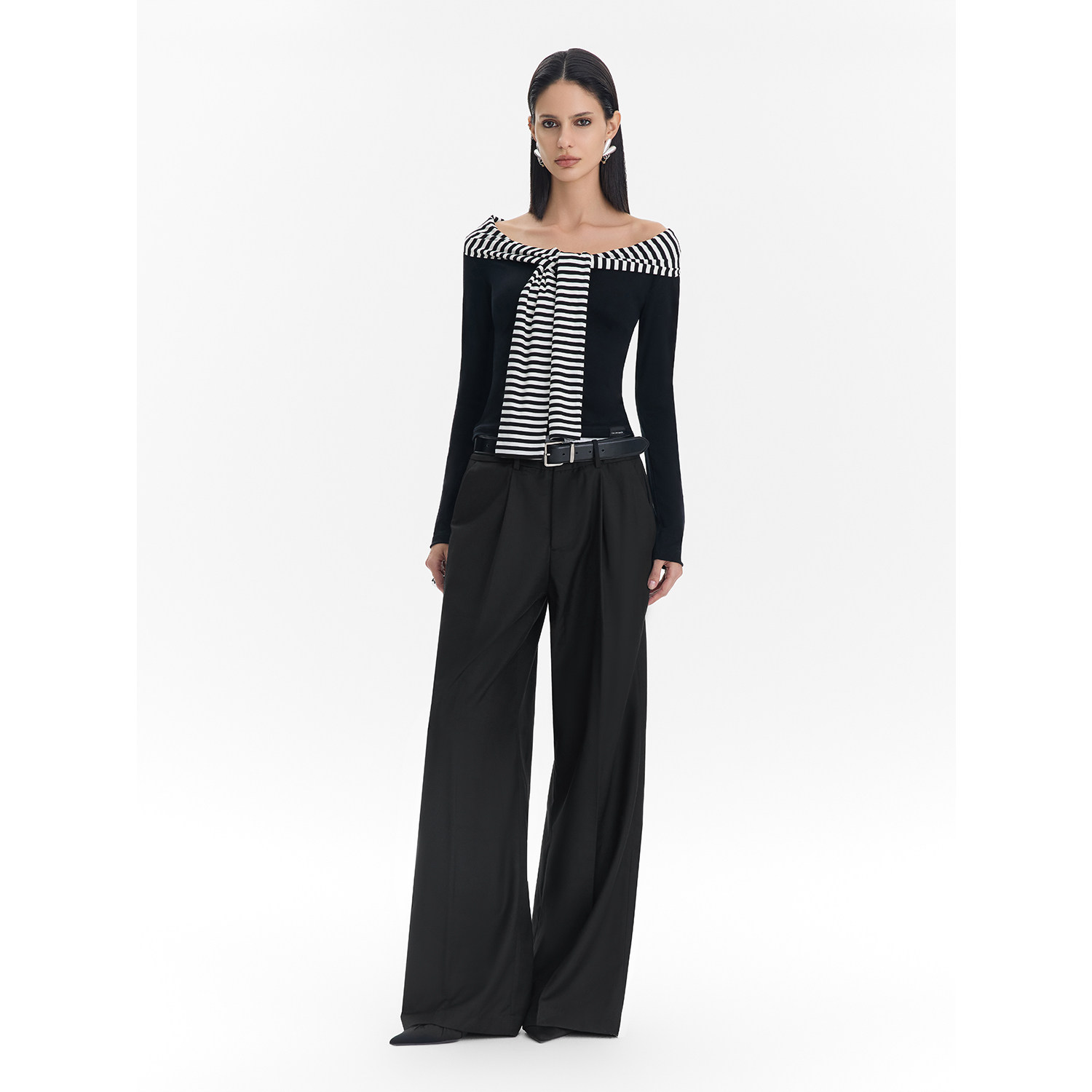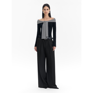 拼接条纹披肩内搭打底衫 Called Back假两件针织上衣女2025秋新款