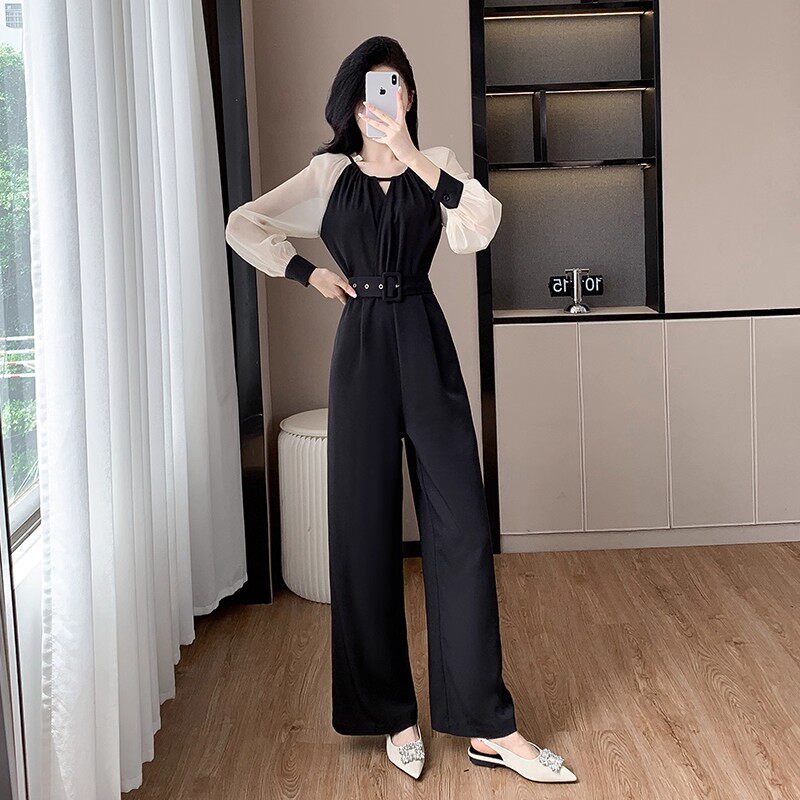 送腰带收腰阔腿连体裤 TX0057 2026早秋女士气质显瘦直筒名媛连体裤