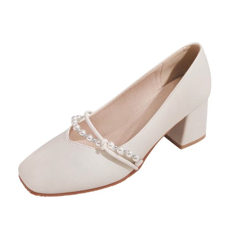 配裙子高跟粗跟单鞋 网红晚晚鞋 女仙女风 春新款 品牌真皮玛丽珍女鞋