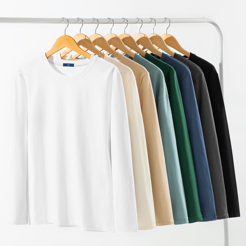 打底衫 春季 全棉内搭圆领休闲高级情侣T恤 男士 GENIOLAMODE纯色长袖